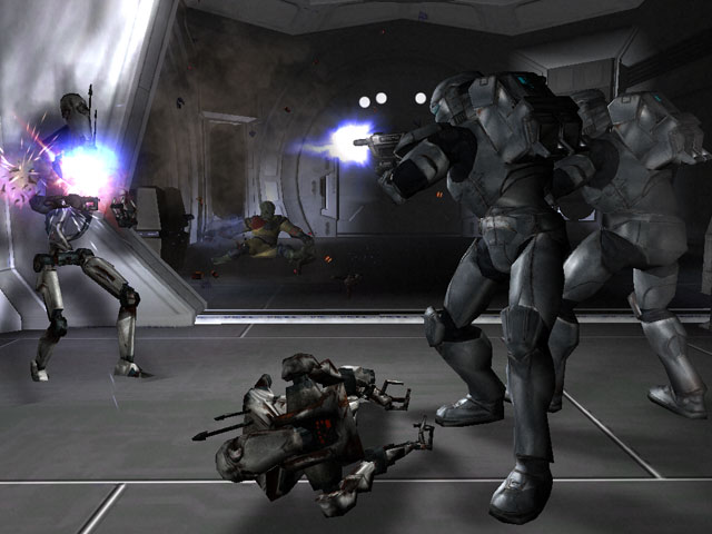 Геймплей Star Wars: Republic Commando — это увлекательный микс экшен-стрельбы и элементов тактического управления отрядом. Вам предстоит не просто прорываться через орды дроидов на планетах Набу, Геонозис и Корусант, но и использовать уникальные способности каждого члена команды. Нужно взломать терминал? Кричите «Скит, к делу!». Враги засели на высотке? «Си-Вейн, занять позицию!». Получили по шлему и видите звёзды? «Фикс, мне нужна помощь!». Игра разбита на короткие, но насыщенные миссии, которые никогда не дают заскучать, а её атмосфера — мрачная, грязная и очень «солдатская» — выгодно отличается от пафосной эстетики основной саги. Это не история о героях в белых накидках, а хроника обычных (ну, почти) парней, выполняющих свою работу в самом сердце Войны клонов.