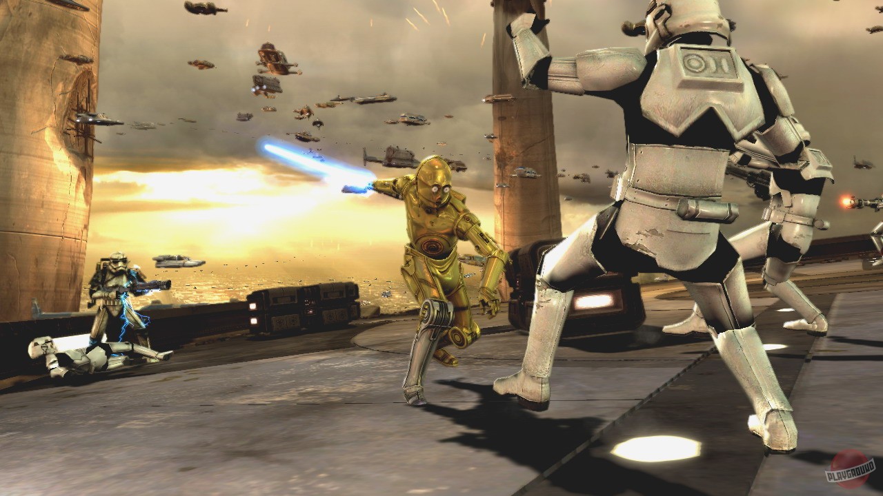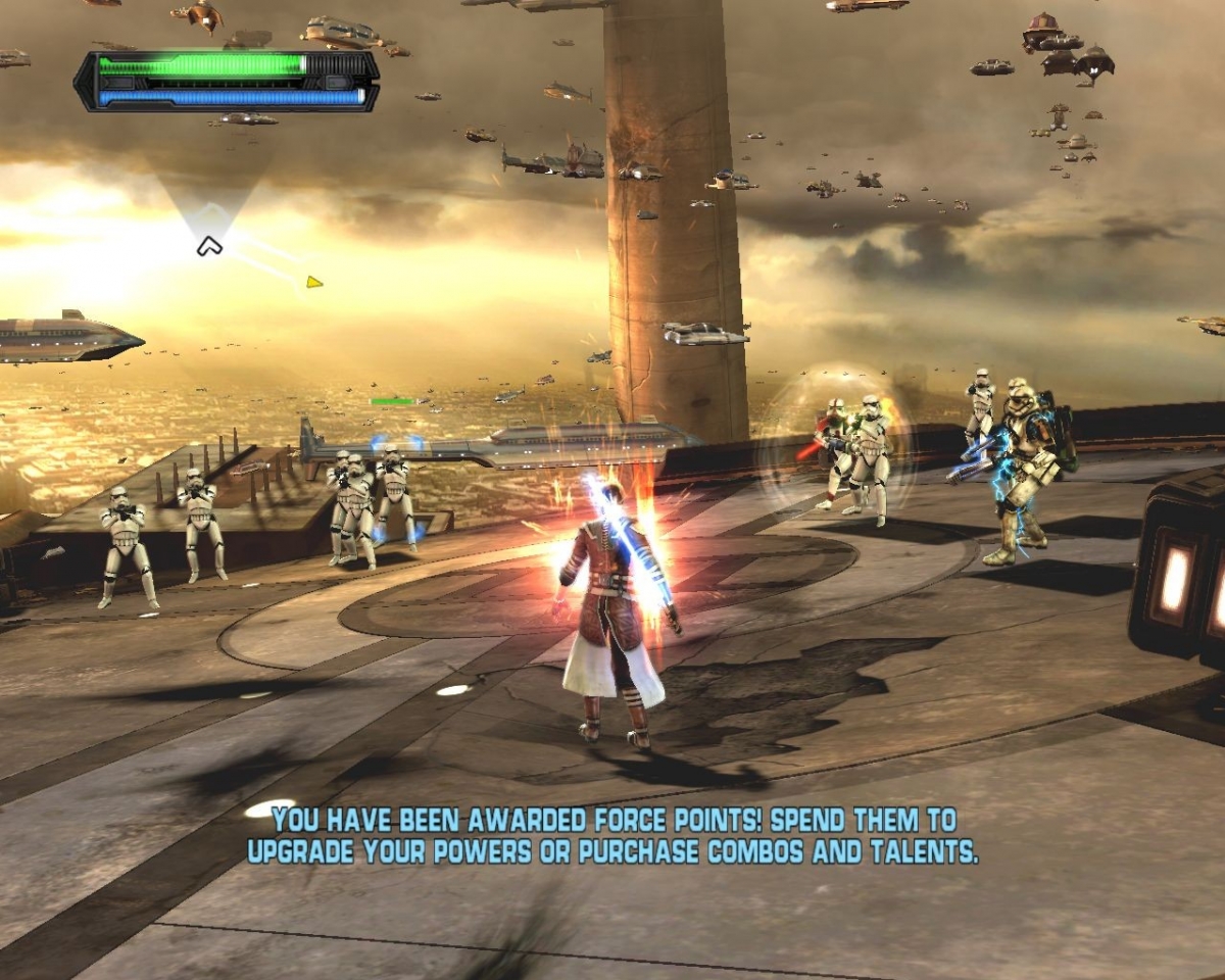 Геймплей Star Wars: The Force Unleashed — это сплошной катарсис для тех, кто всю жизнь мечтал не просто победить врага, а устроить ему полный редизайн ландшафта с помощью одной лишь мысли. Вы будете не просто рубить врагов своим световым мечом, а использовать Силу так, будто вы — гибрид Йоды и гравитационной пушки. Хотите поднять целый имперский крейсер и швырнуть его в толпу штурмовиков? Пожалуйста! Мечтаете обрушить мост на отряд штурмовиков, пока они еще обсуждают, где взять кредит на новую броню? Легко! Эта игра — настоящий симулятор вседозволенности для джедая/ситха, где физический движок работает на полную мощность, чтобы ваши фантазии о разрушении стали реальностью. А еще здесь есть акробатические трюки, логические загадки и множество знаковых локаций, от Корусанта до Камино, что делает приключение по-настоящему захватывающим.
