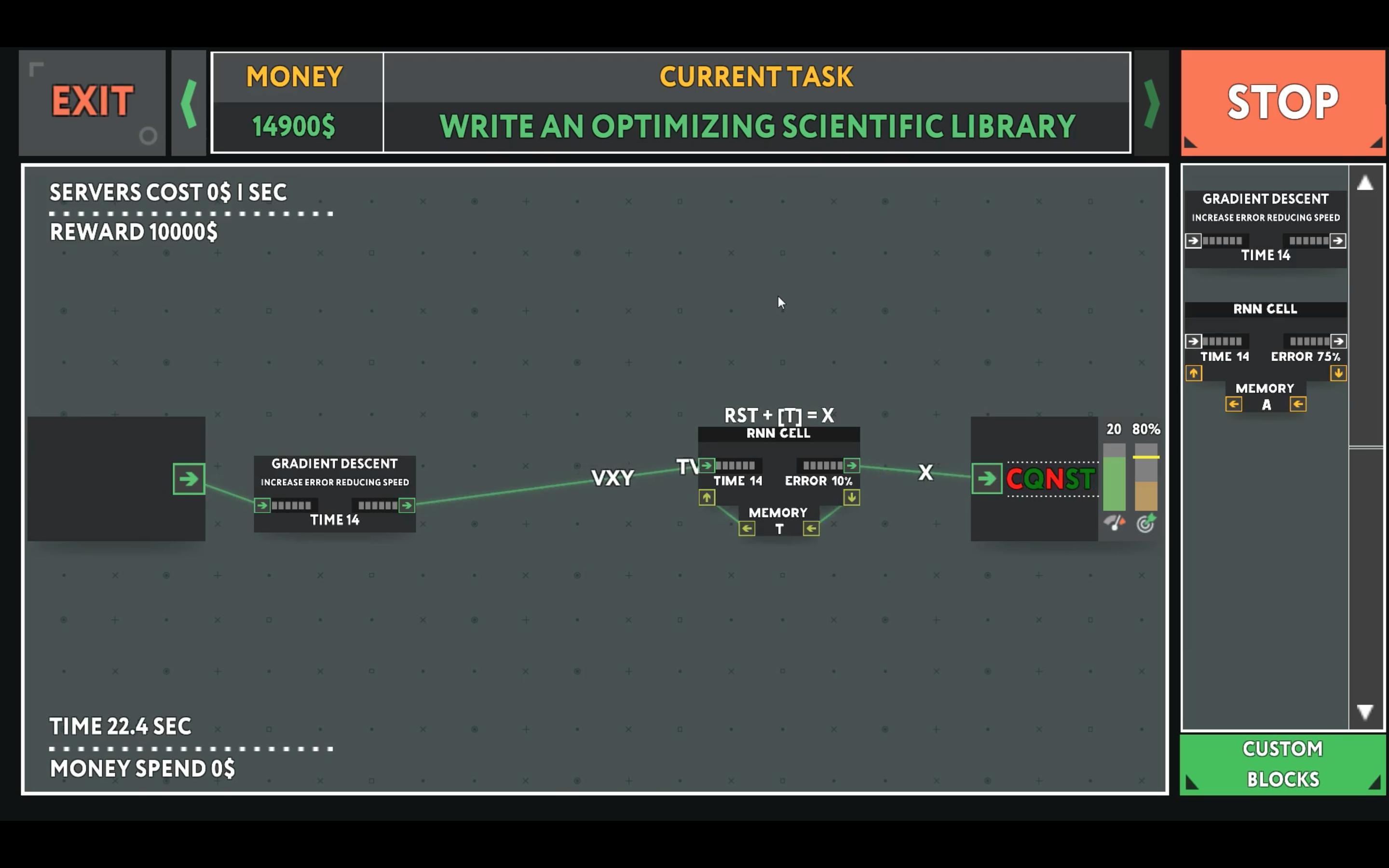 Симулятор, посвященный машинному обучению, нейросетям и искусственному интеллекту. В игре вам предстоит использовать визуальное программирование для того, чтобы создать переводчик, позволяющий общаться людям и кошкам. while True: learn() имеет обучающую функцию: с ее помощью вы сможете изучить основы кодинга и машинного обучения.