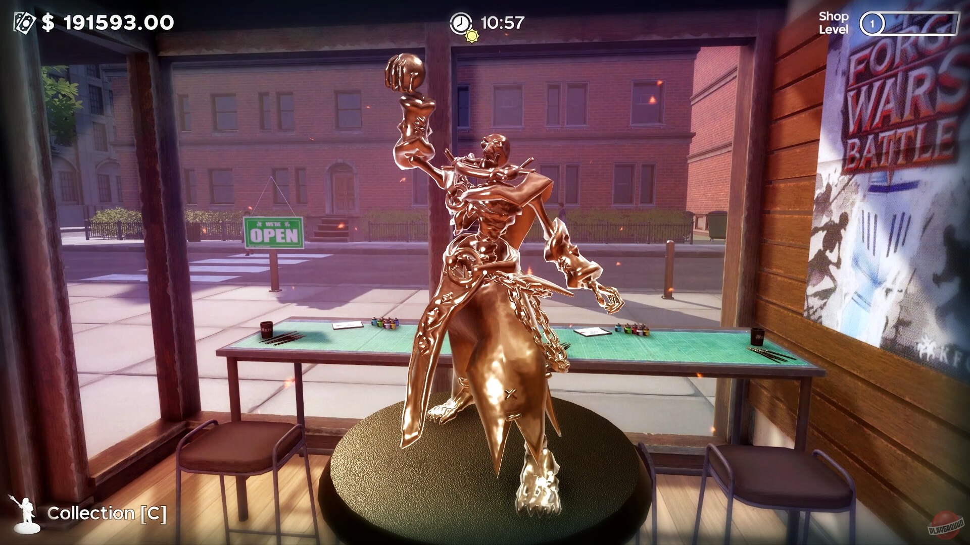 Симулятор управления магазином настольных игр. Вам предлагают открыть собственную лавку с миниатюрами, правилами и аксессуарами для любителей варгеймов. И потом всё сводится к тому, чтобы превратить небольшой магазинчик в центр местного сообщества геймеров. Нужно расставлять товары на полках, нанимать сотрудников, устанавливать цены и следить за финансами — словом, заниматься всем тем, чем занимается реальный владелец такого бизнеса.