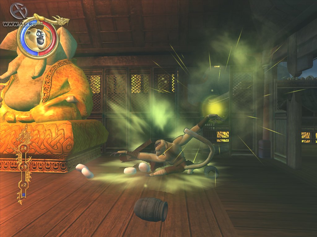 Геймплей Kung Fu Panda — это идеальный микс простоты и веселья. Управлять По легко: пара кнопок для быстрых и мощных ударов, прыжок для уклонения и специальная кнопка действия для всего остального. Вы будете осваивать различные стили кунг-фу, чтобы противостоять таким грозным боссам, как Великий Горилла или сестры У, а главное — легендарному Тай Лунгу. Но не думайте, что всё так серьёзно! Игра наполнена фирменным юмором мультфильма: от глупых шуток По до абсурдных мини-игр, включая даже что-то вроде «Яцзы» с боевыми искусствами. Это не просто игра по мотивам фильма, это ваш личный тренировочный лагерь для души (и живота).