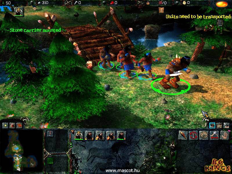 BC Kings представляет собой RTS, сюжет которой разворачивается в Каменном Веке. Мы играем за отважного воина Мрадина, который со своим другом странствует по свету в погоне за новыми знаниями. В игре действуют заклинания, способные как помочь, так и навредить нам.