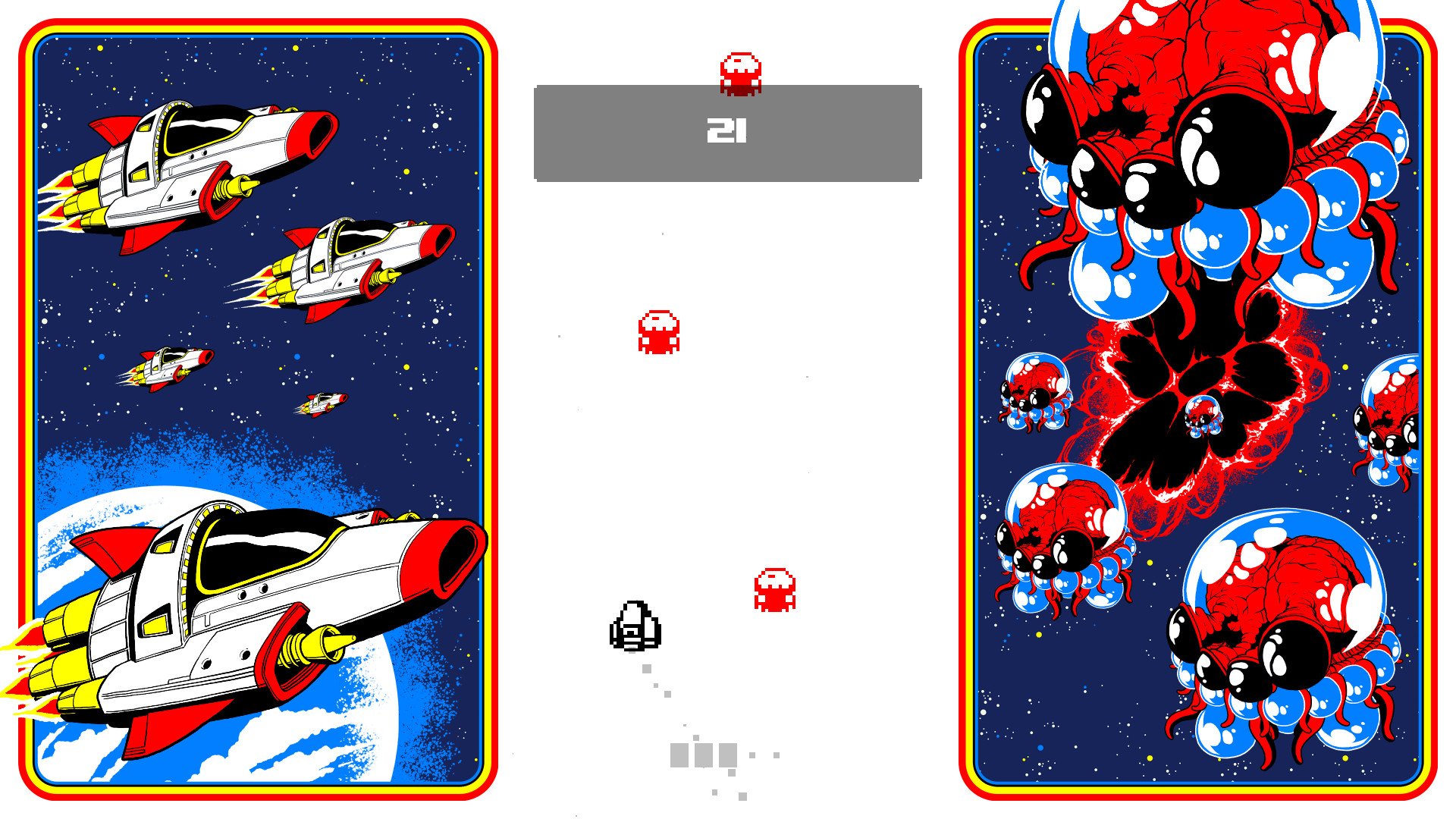 Представьте себе: вы — последняя надежда Земли, пилотирующий супер-пупер звездолёт против орды инопланетных захватчиков. И у вас есть... одна кнопка. Да-да, вы не ослышались! В Switch 'N' Shoot весь арсенал галактического защитника сводится к простому, но гениальному принципу: нажал — выстрелил и мгновенно сменил направление движения. Это не просто аркадный пиксельный шутер, это экзамен на координацию, реакцию и способность не запутаться в собственном хвосте (или, точнее, в траектории полёта). Каждый ваш выстрел — это не только пуля в лоб врагу, но и резкий вираж, который может спасти вас от града лазеров или, наоборот, отправить прямиком в стену. Готовы ли вы стать мастером этого космического танго?