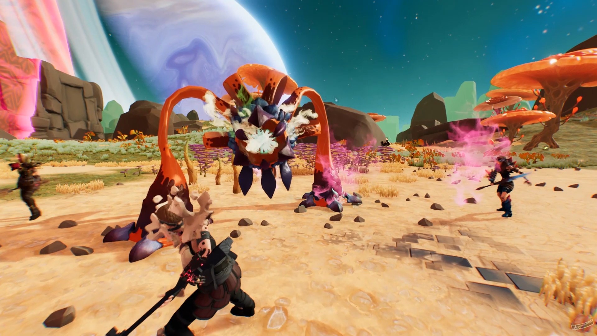Ваш путь в Eden Rising начинается с простого: исследуйте огромный, красочный и опасный открытый мир, собирайте ресурсы, крафтите всё — от примитивного топора до продвинутого энергетического оружия, и прокачивайте своего персонажа. Но главная фишка игры — это режимы защиты. В определённые моменты на ваши базы обрушиваются волны врагов, и тут-то и начинается самое интересное. Вам предстоит не просто стоять и стрелять, а заранее продумывать тактику обороны: где поставить пулемётную башню, а где — замедляющее поле? Как лучше всего использовать рельеф местности? Этот геймплей отлично раскрывается в кооперативе, ведь вместе с друзьями (до 8 игроков!) защищать свои позиции гораздо веселее и эффективнее. Отзывы игроков часто отмечают, что именно совместная игра делает Eden Rising по-настоящему увлекательной.