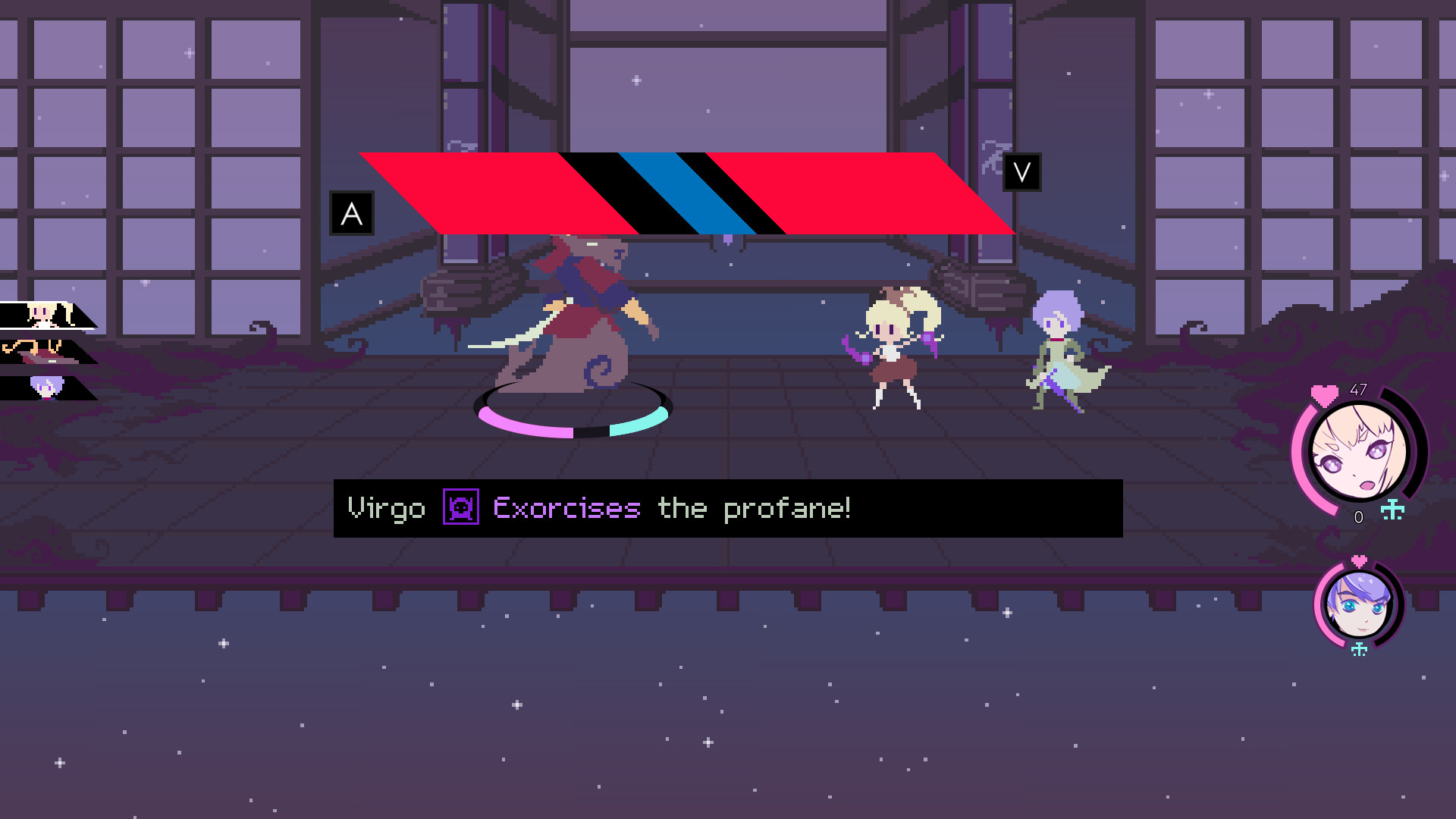 Геймплей Virgo Vs The Zodiac — это гениальный микс классической пошаговой системы с элементами активного участия игрока. Это не просто «выбрал заклинание и ждёшь, пока оно сотворится». Тут вам нужно ловко нажимать кнопки в нужный момент, чтобы усилить атаку или, что ещё важнее, парировать удар противника. Представьте, что вы играете в ритм-игру, но вместо нот — кулаки разъярённых зодиакальных воинов, которые пытаются вас остановить. Баланс между агрессией и защитой здесь — ключ к победе, и прокачка персонажа превращается в настоящее искусство. Вас ждут хитроумные подземелья, полные головоломок, которые заставят почесать затылок даже самым заядлым фанатам жанра, и мини-игры, от которых невозможно оторваться.