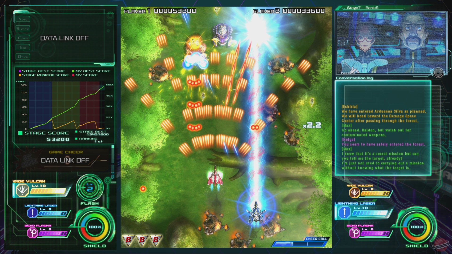 Raiden 5 — игра в жанре shoot 'em up, где нужно летать на космическом корабле в плоскости и отстреливать врагов. В игре нашлось применение статистике игроков, у других пилотов можно будет подсмотреть наиболее эффективное оружие.