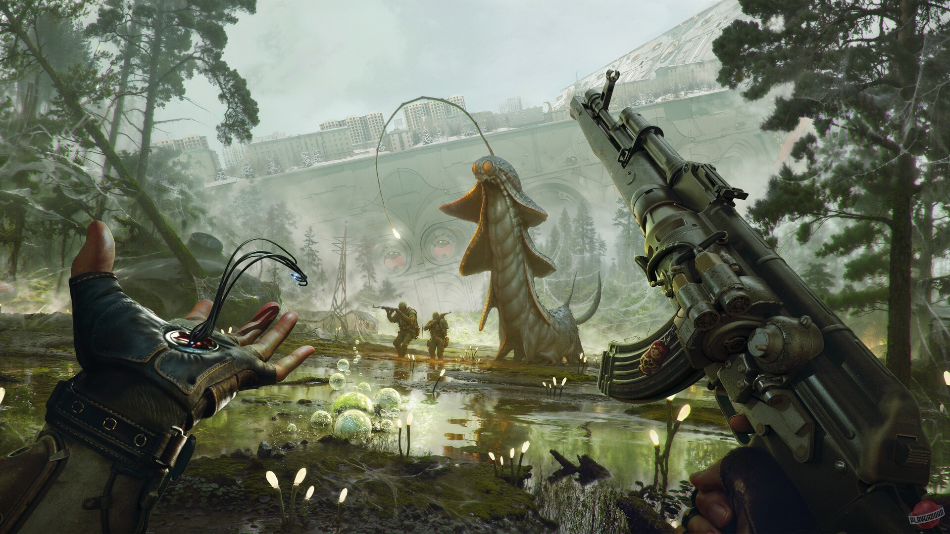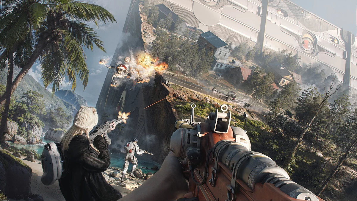 Игра во вселенной Atomic Heart, только эта многопользовательская. Суть такая: в небе висит огромный куб, который постоянно крутится и меняет свои стороны. Говорят, что внутри него спрятано какое-то уравнение, которое может поломать всю физику. Вот этот куб и нужно исследовать.