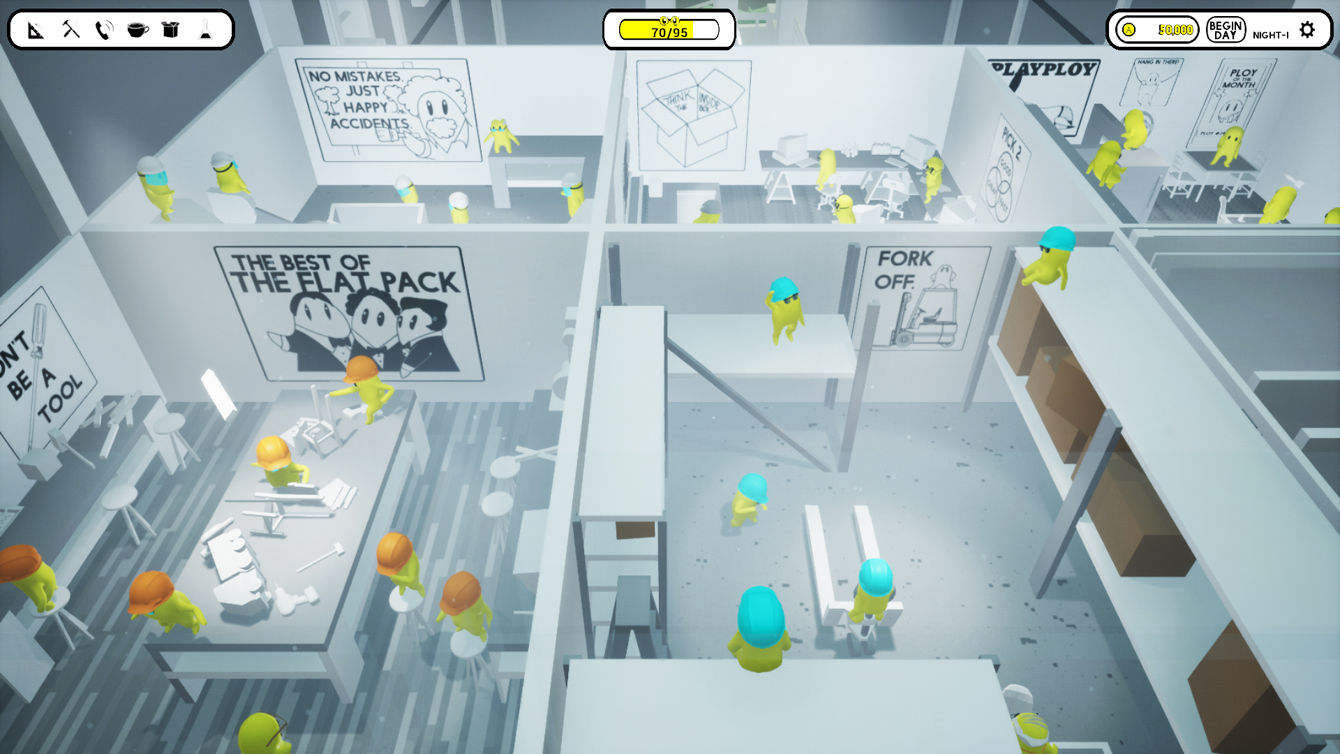 Assembly Required — это гениальный микс жанров: стратегия, тайкун и элементы tower defense, но вместо башен у вас — полки с книжными шкафами БILLY и диваны KLIPPAN. Вы начинаете с простого магазинчика, но быстро превращаетесь в короля розничной торговли, создавая многоуровневые ловушки из мебели. Вам предстоит управлять не только планировкой, но и персоналом: направляйте своих сотрудников, чтобы они "случайно" теряли ценники или предлагали клиентам дорогущие аксессуары. Каждый посетитель — это потенциальный заложник вашего коммерческого гения, и ваша цель — выжать из него максимум, пока он блуждает в поисках выхода.