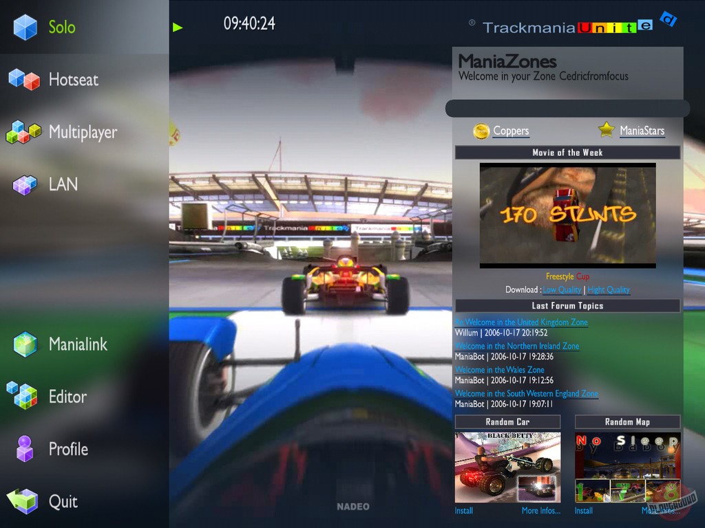 TrackMania United объединяет все семь окружений серии и предлагает огромную, обогащенную одиночную кампанию, включающую четыре различных режима и 420 постепенно усложняющихся трасс. Прыжки с трамплинов, петли, виражи, турбоускорители, разрушители трасс, рельсы и рампы... каждая трасса позволит вам испытать ваши гоночные навыки.
