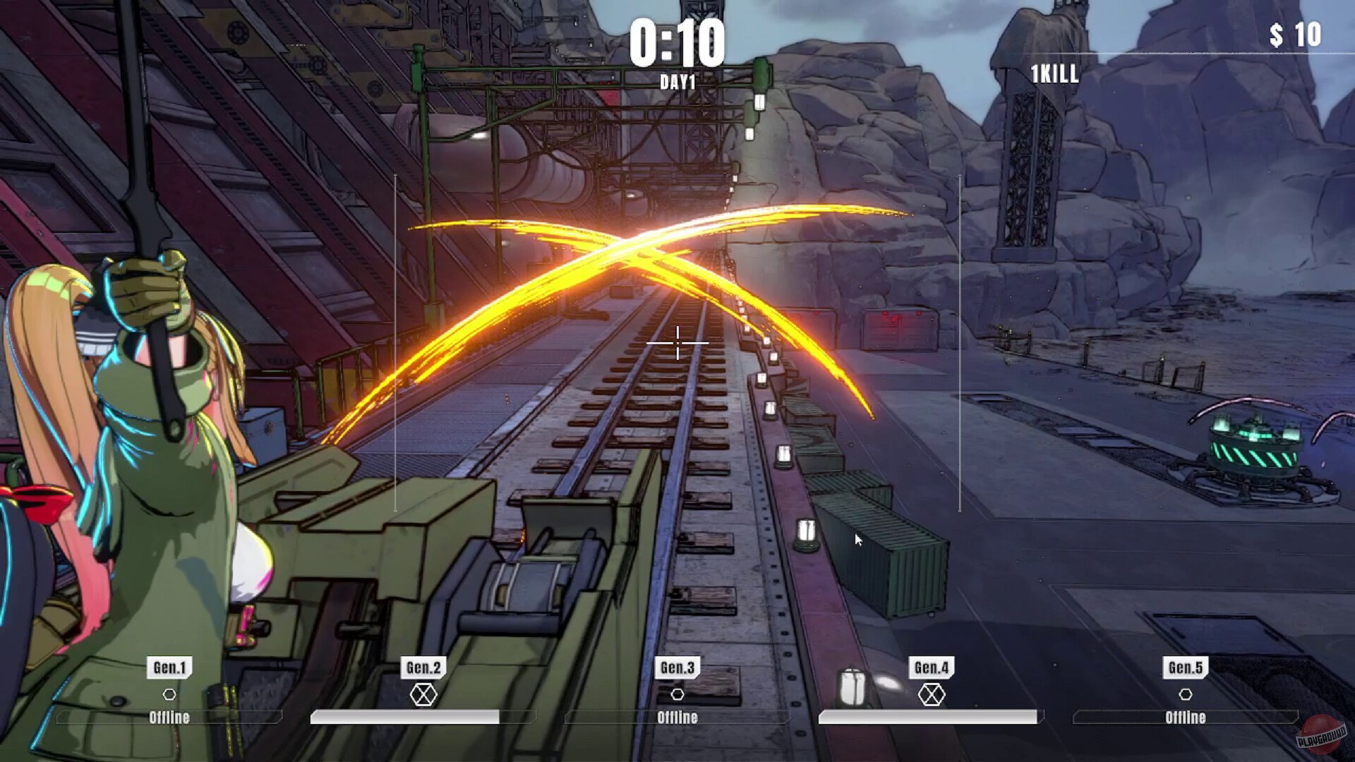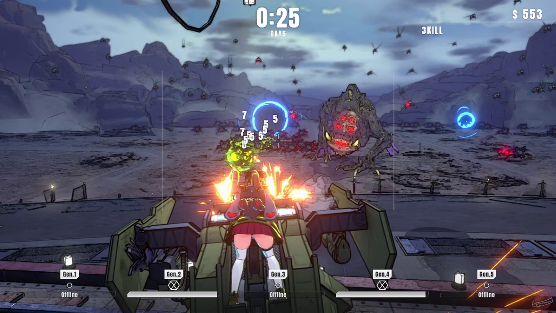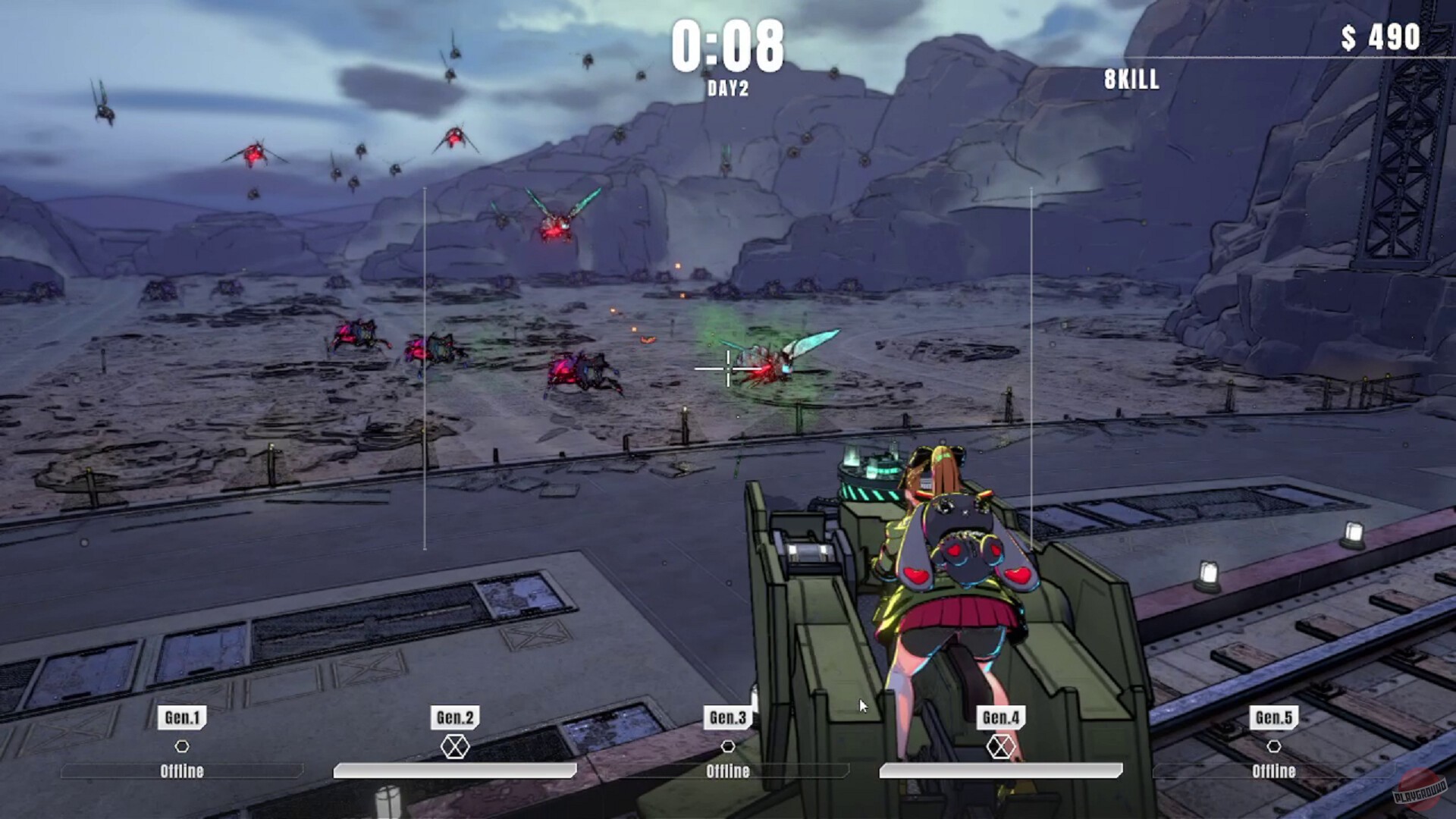 Игра про аниме-девушку, которая сидит на турели и отстреливает пришельцев. Она работает в какой-то военной организации с названием P.A.N.T.S.U. и должна защищать генератор, который заряжает суперорудие для спасения Земли. Пришельцы лезут через порталы волнами, а вы их отстреливаете, вот и весь геймплей.