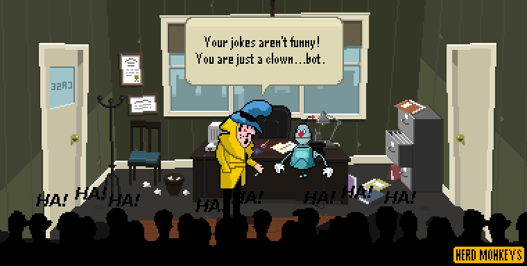 Detective Case and Clown Bot in: Murder in the Hotel Lisbon