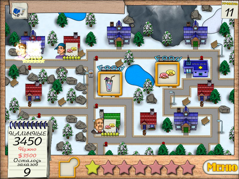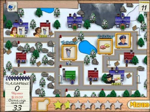 "Доставщик Еды" - казуальная игра, в которой игрок занимается доставкой заказанной еды. Если опоздать к назначенному времени, с курьера снимают штраф. Среди препятствий могут встретиться воры и хулиганы. За каждый выполненный заказ начисляются деньги.