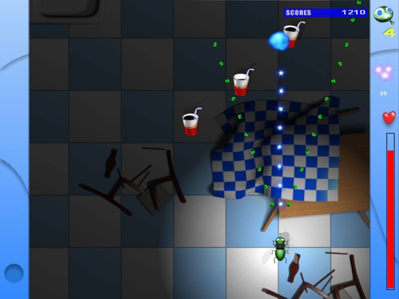 Геймплей Джей. Опасный Полет прост, как укус комара, но затягивает, как болото. Вы управляете нашей крылатой надеждой Джейем, который должен пролететь через три смертельно опасные локации: сад, кухню и гостиную. Каждый уголок дома превращается в поле боя! Вас будут атаковать буквально со всех сторон: хозяйка замахнется тапком, дети начнут швыряться игрушками, а в гостиной вас поджидает настоящий арсенал бытовой техники. Но наш герой не промах! Он не только мастерски уворачивается от всего, что имеет хоть малейший шанс его раздавить, но и может стрелять! Да-да, муха с оружием — это нормально в этом мире. Собирайте бонусы для стрелялок, чтобы превратить свою жужжалку в настоящую пушку и уничтожать врагов наповал. Это не просто игра про муху, это захватывающий экшен с элементами стрелялки, где каждый уровень — это новый вызов вашей реакции и координации.