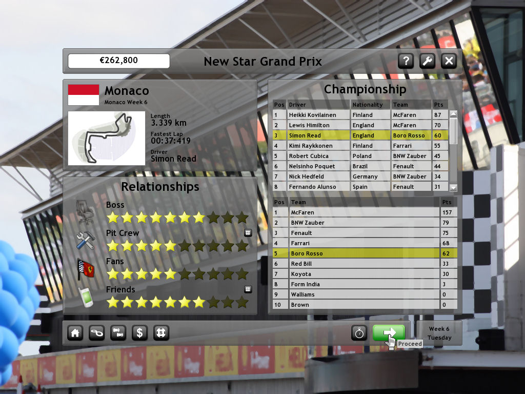 В New Star Grand Prix вас ждет не просто заезд от флажка до флажка. Нет-нет, здесь все серьезно! Перед каждым кругом вам предстоит принять стратегические решения: выбрать правильные шины под погодные условия (да, вы можете сами решить, будет ли дождь или солнце!), проверить уровень топлива и состояние болида. А еще нужно не забывать подбрасывать монетку в фонтан дружбы — поддерживать хорошие отношения с членами команды и друзьями жизненно важно для успеха. Карьера в игре охватывает целых пять десятилетий гонок, так что у вас будет более чем достаточно времени, чтобы превратиться из новичка-неудачника в легенду трассы, соревнуясь на 17 реальных трассах со всеми лучшими водителями мира.