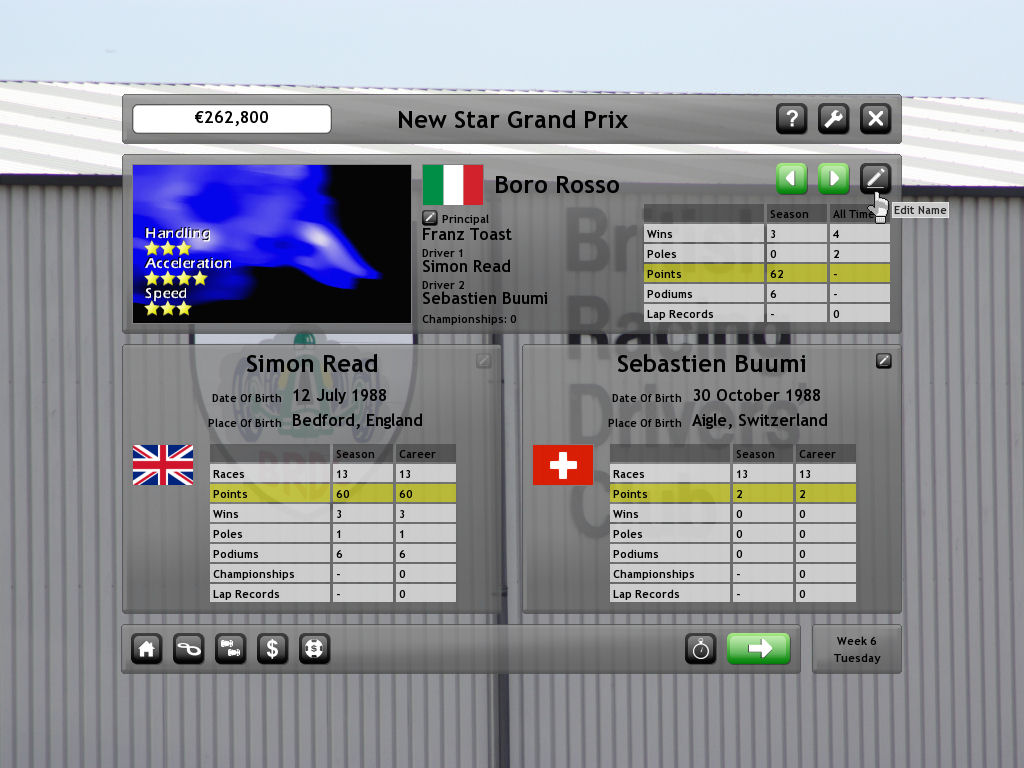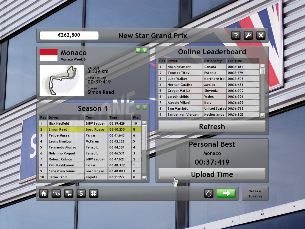 Забудьте про скучные симуляторы, где вы больше инженер, чем гонщик! New Star Grand Prix — это ваш билет в яркий, безумный и невероятно увлекательный мир автоспорта, где скорость важна не меньше, чем ваши отношения с механиком. Представьте себе: вы — молодой пилот, мечтающий покорить подиумы, а ваш главный враг — не только соперники на трассе, но и собственный кошелек, который постоянно плачет из-за расходов на новые шины и бензин. Эта игра идеально сочетает драйв аркадных гонок с видом сверху (помните легендарные Micro Machines?) и неожиданную глубину менеджмента карьеры, заставляя вас чувствовать себя настоящей звездой Формулы 1.