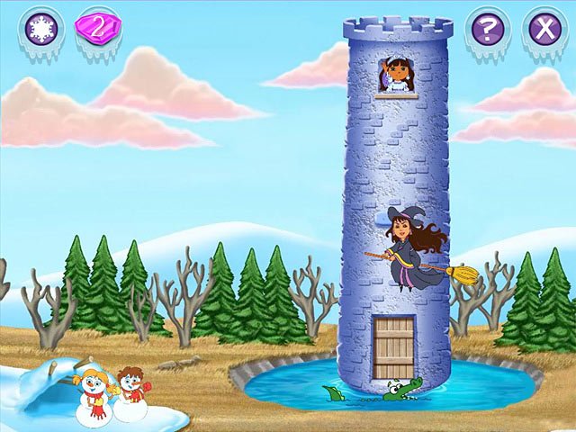 Dora Saves the Snow Princess - детская головоломка. Дора идет спасать Снежную принцессу, похищенную ведьмой. Ее заточили в ледяной башне, дорогу к которой Доре и предстоит отыскать. Девочка решает головоломки, чтобы найти правильный путь и освободить принцессу.
