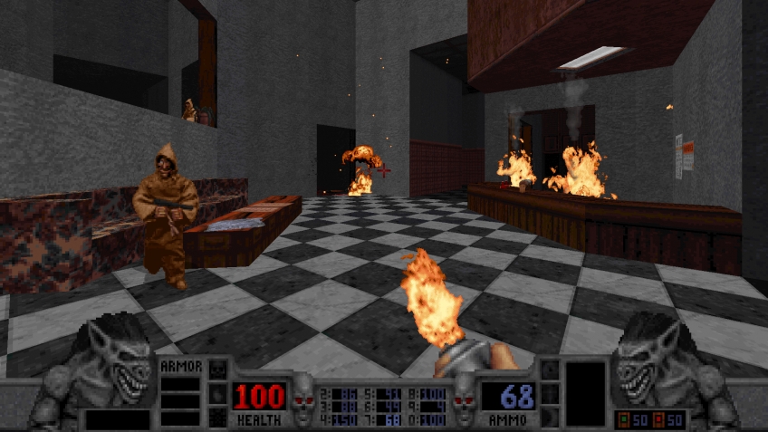Вас ждет 42 уровня чистого, неразбавленного экшена в роли Кабула, мстительного призрака, который вернулся из ада не для того, чтобы пить чай с печеньками, а чтобы устроить настоящий апокалипсис для культа «Черной Колыбели» и их главаря — Тентакля. Геймплей здесь — это чистая поэзия старой школы: исследуйте лабиринты, взрывайте бочки (о, эти священные бочки!), решайте головоломки, чтобы открыть секретные комнаты, и, конечно же, превращайте орды зомби, культистов и прочих монстров в кровавое рагу с помощью уникального арсенала. От знаменитого дробовика до гарпуна, от тесака до «Вулкана» — каждое оружие в Blood обладает своей душой и способностью устроить настоящее представление. И да, кооперативный режим есть! Теперь вы можете делить эту славу (и последнюю аптечку) с другом.