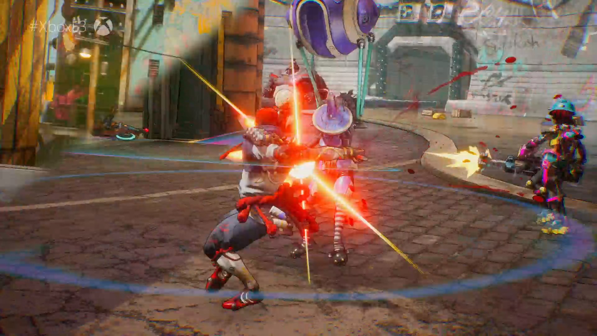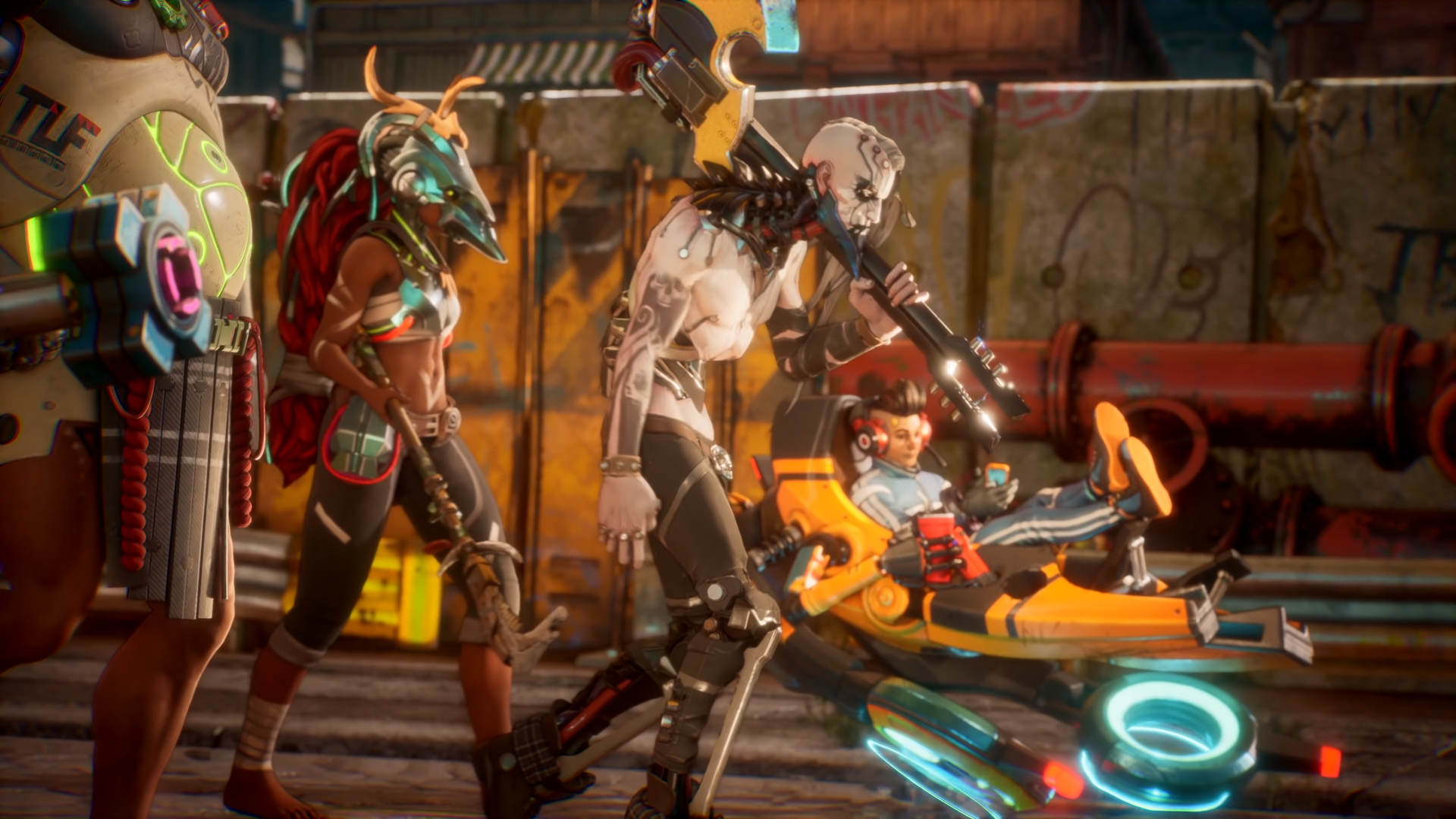 Герои в Bleeding Edge - это отбросы общества, которые выделяются даже среди себе подобных. Игроков ждут персонажи с руками-пилами, безумный гитарист, который с помощью электрогитары поджаривает врагов и прочие асоциальные личности с деструктивными наклонностями. Сражаясь друг с другом, игроки должны использовать не только навыки и оружие, но и окружение, а для большей эффективности можно дополнительно улучшать своих бойцов при помощи киберимплантов.