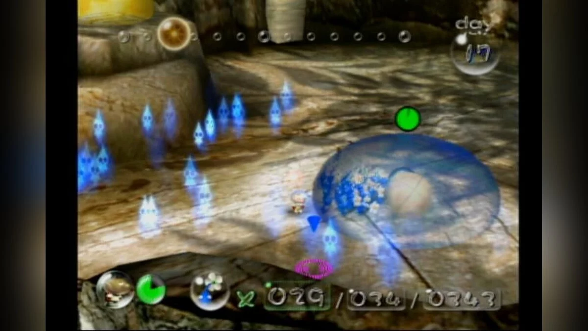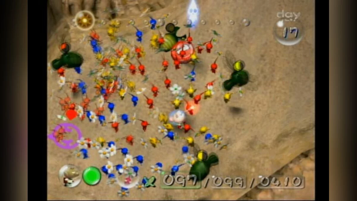 Игра в жанре стратегии реального времени, созданная известным разработчиком Сигэру Миямото для Nintendo Gamecube. Вы играете за капитана Олимара, который потерпел крушение на незнакомой планете и должен собрать разбросанные части своего корабля. На планете вы встречаете странных существ, которых вы решаете называть пикминами. Пикмины могут помочь вам в вашей миссии, если вы будете командовать ими. Вы должны использовать разные виды пикминов, чтобы преодолевать препятствия, сражаться с врагами и переносить части корабля. У вас есть всего 30 дней, чтобы собрать все части и улететь с планеты, иначе вы умрёте от ядовитого кислорода.