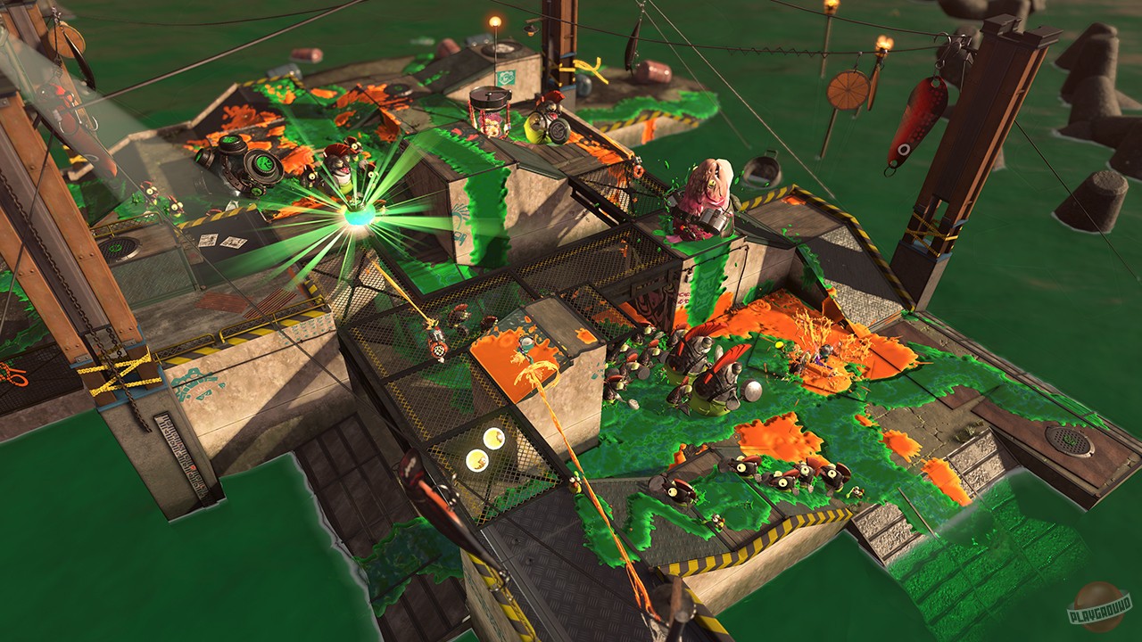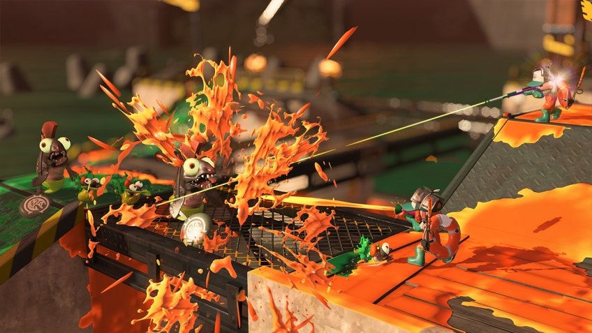 Splatoon 2 — это не просто сиквел, это эволюция самого понятия «многопользовательский шутер». Здесь нет места злобным мрачным героям; вместо них — куча харизматичных персонажей, модная одежда (которую можно менять как перчатки и которая дает полезные бонусы), и музыка, от которой хочется танцевать даже в разгар боя. Игра предлагает несколько захватывающих режимов: классический «Турбо-территория» (Turf War), где все просто — крась всё!, и более сложные ранговые бои, такие как «Рэйд», «Кража флага» или «Дожималка». А еще есть уникальный кооперативный режим «Сальмон-ран» (Лососевый забег), где команда из четырех игроков должна отбиваться от волн м монстров-октопусов, собирая золотую икру. Это как взять лучшее из PvE и PvP, смешать с безудержным позитивом и подать на самой стильной вечеринке в городе!