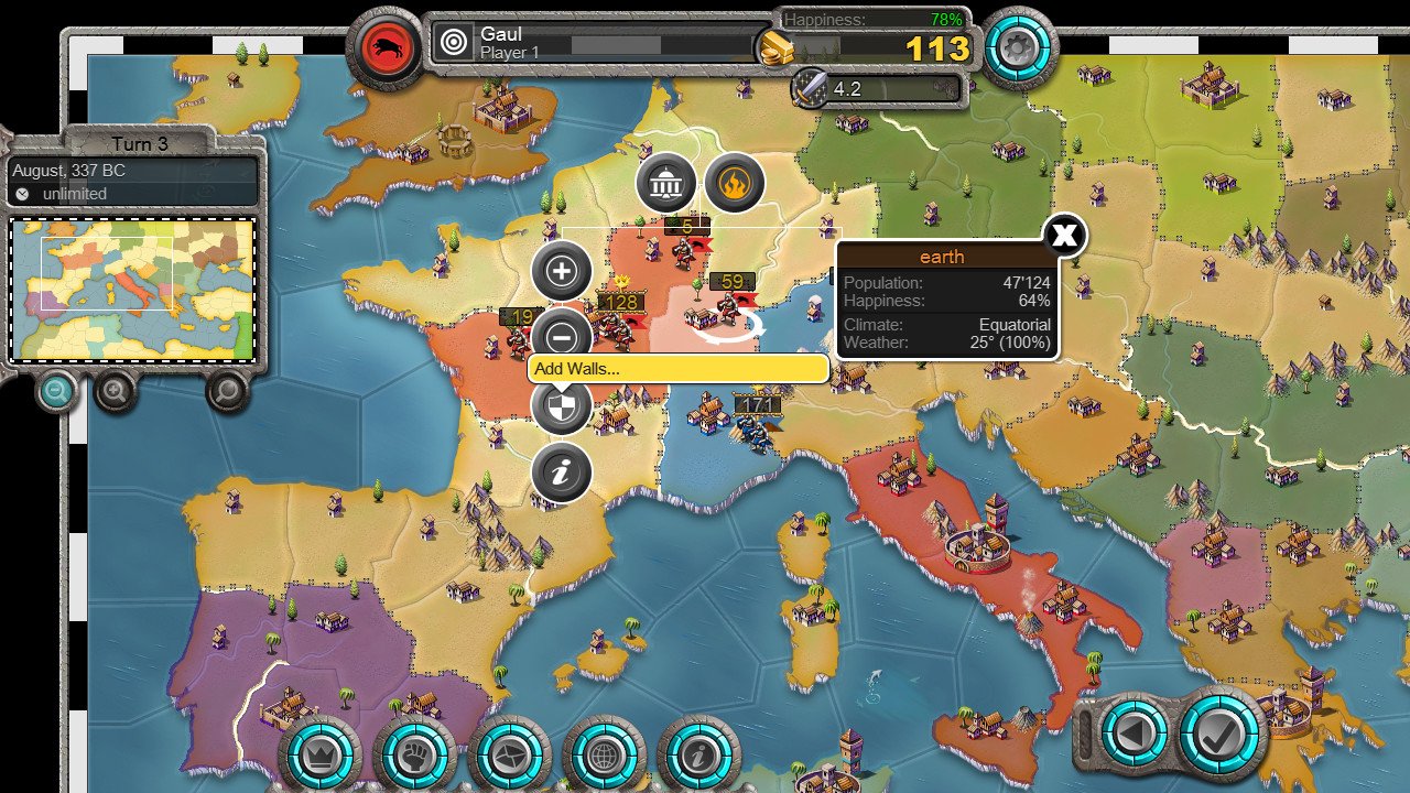 Геймплей Age of Conquest IV порадует как новичков, так и искушённых стратегов. Всё просто: вы собираете ресурсы, вербуете армии, заключаете союзы (и тут же их предаёте, когда это выгодно) и захватываете новые территории. Игра славится своей простотой и интуитивно понятным интерфейсом, но не дайте этому вас обмануть — под лаконичной обёрткой скрывается глубокая стратегическая система. Вас ждут разнообразные карты, от исторических регионов до фэнтезийных континентов, и продуманный искусственный интеллект, который будет достойным противником даже для самых опытных игроков. А ещё есть режим «горячего стула» для тех, кто хочет устроить битву титанов прямо на одном компьютере с другом (предупреждаем: дружба может не пережить такое соперничество).