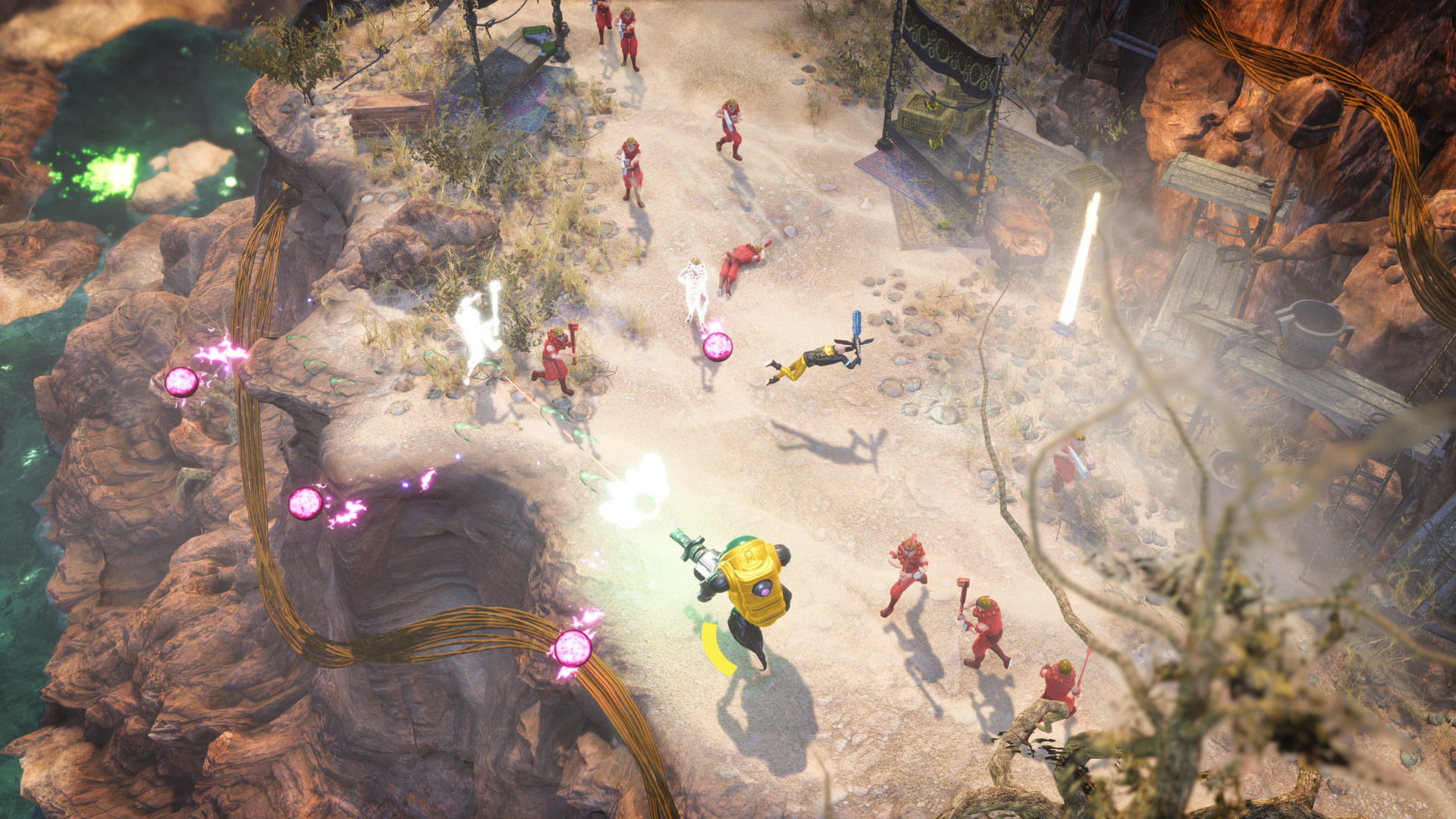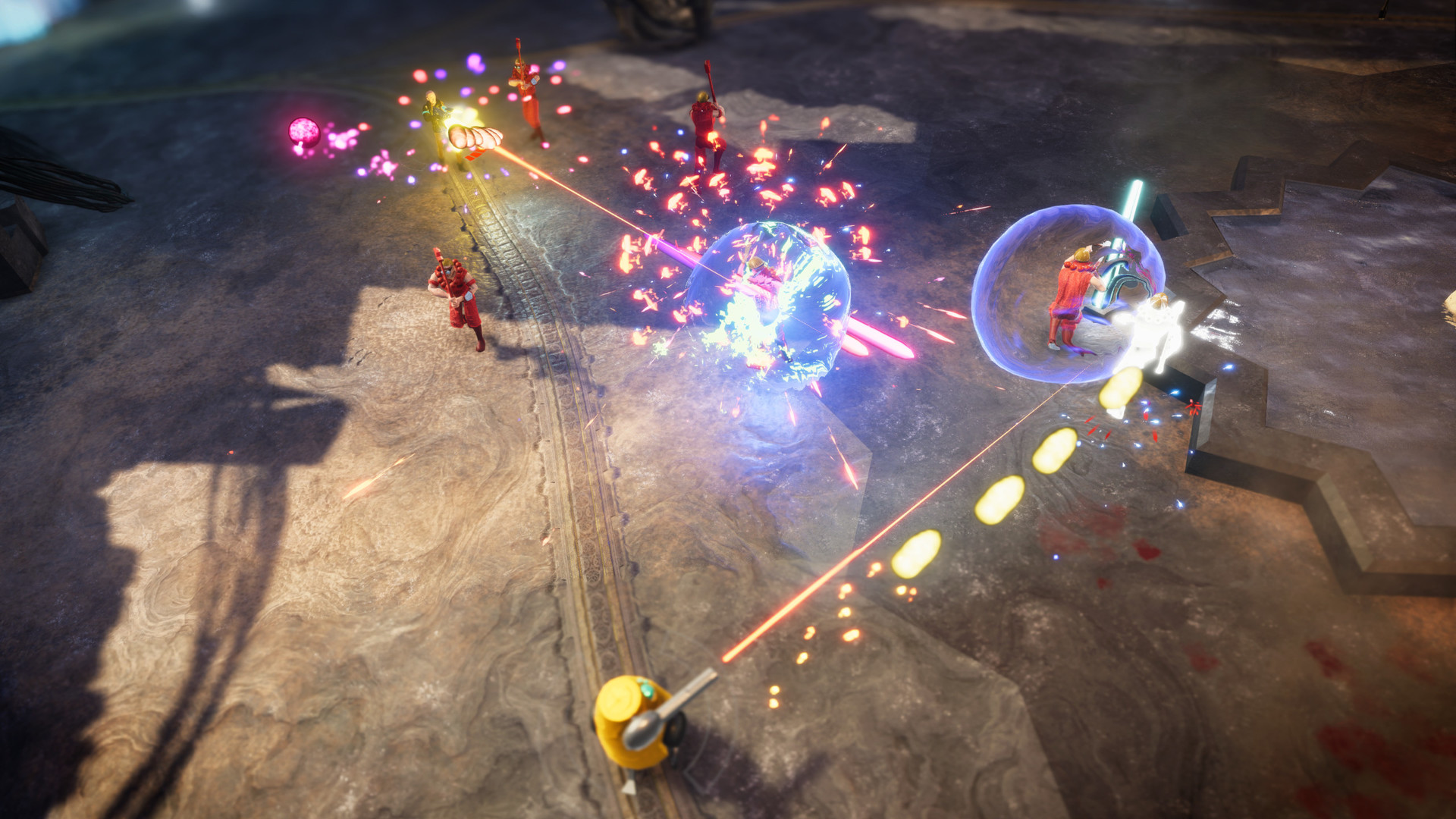 В основе Children of the Eclipse лежит проверенный временем жанр top-down shooter, но разработчики из Nutfarm Games явно решили не ограничиваться простым ностальгическим ремейком. Вас ждет динамичный геймплей, где вы и ваш напарник будете поливать свинцом всех, кто движется, в режиме строгого кооператива для двух игроков. Представьте себе смесь The Red Solstice с яркими красками и более аркадным подходом — вот вам и рецепт идеального вечера. Сюжет? Ну, конечно! Два обычных обывателя вдруг оказываются в эпицентре космического хаоса, и теперь им предстоит не только выжить, но и раскрыть тайну исчезновения важного оборудования. Впрочем, честно говоря, когда вокруг тебя бегают совершенно безумные (в хорошем смысле!) противники, сюжет отходит на второй план, уступая место чистому, незамутненному экшену.