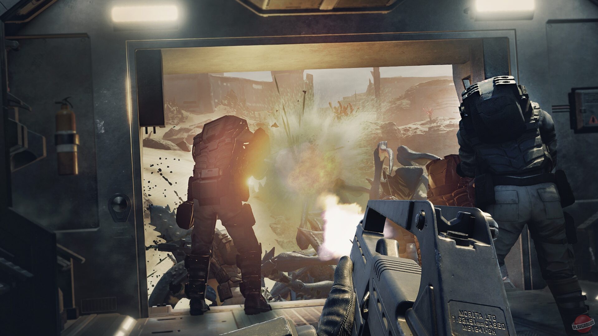 Starship Troopers: Extermination — кооперативный PvE-шутер от 1-го лица во вселенной киносаги «Звёздный Десант». Отряду из 12 игроков в составе мобильной пехоты предстоит сражаться в «Авангарде глубокого космоса» на враждебных планетах, а также отстраивать базы и укрепления. На выбор будет 3 класса (Штурм, Поддержка и Защита) со своими система развития навыков и огромная карта с 5 уникальными биомами.