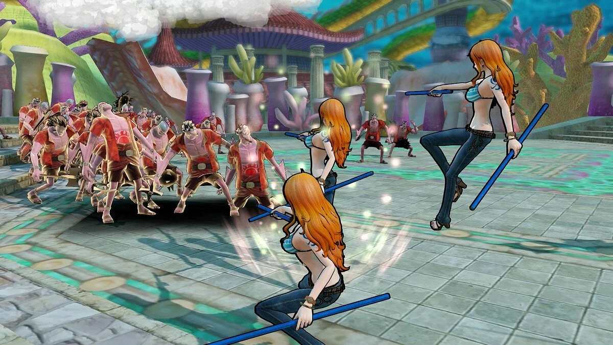 One Piece: Pirate Warriors 3 — это ваш билет в эпичное путешествие по миру Ван-Пис от самого начала и до кровавой арки Дресс-Роса. Вас ждет более 37 (!) уникальных персонажей из команды Соломенной Шляпы и их заклятых друзей-врагов: от рубаки Зоро и шеф-повара Санжи до загадочной Буэны Хэнкок и странного Иванкова. Каждый герой обладает своим неповторимым стилем боя и фирменными приемами, которые вы видели в аниме. Хотите лихо размахивать тремя мечами? Пожалуйста! Мечтаете готовить кулинарные сюрпризы для морских офицеров? Легко! А может, вы просто хотите использовать свою красоту, чтобы парализовать врагов? И это тоже возможно! Игра прекрасно передает дух оригинала, дополняя его фирменным геймплеем серии Dynasty Warriors, где масштаб сражений зашкаливает за все мыслимые пределы.