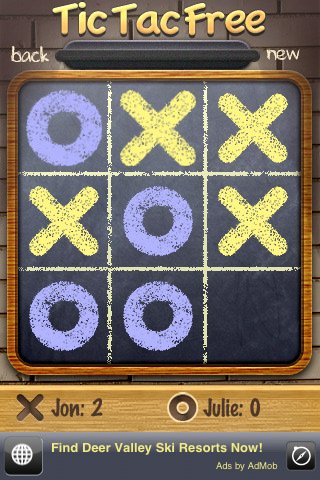 Free Noughts and Crosses - крестики-нолики, где имеется как однопользовательский, так и многопользовательский режим через Wi-Fi или 3G. Вы можете выбрать себе оппонента из любой точки мира и сразиться в логике. Предлагается три уровня сложности и возможность отменять свой ход.