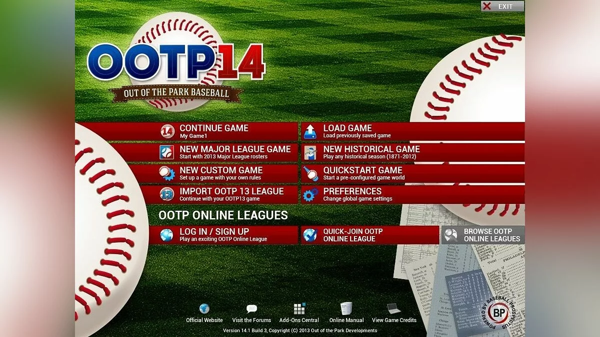 Out of the Park Baseball 14 — управленческий симулятор, посвященный бейсболу. Вы сможете создать свою собственную команду мечты и привести её к победе в турнире за кубок страны. Вас ожидают реально существующие игроки, много различных режимов, продвинутые тактические возможности и много, очень много параметров.