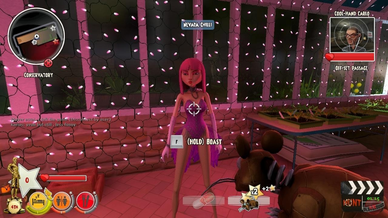 Геймплей Bloody Good Time строится вокруг динамичных раундов, в которых до восьми игроков одновременно пытаются друг друга устранить, чтобы стать звездой кровавого шоу. Каждая карта — это новая локация на этой безумной площадке, будь то старый особняк или заброшенный завод, и каждая наполнена ловушками, секретными проходами и, конечно же, тоннами оружия для творческих убийств. Особое внимание стоит уделить уникальному оружию: мощный выстрел из водяного пистолета может отправить врага в нокаут, а хорошо брошенная сковорода — в небытие. Но главная фишка — это R.C. Rat (радиоуправляемая крыса), которая позволяет вам подкрасться к ничего не подозревающему сопернику и устроить ему сюрприз, от которого он точно не оправится. Это идеальный пример того, как кооперативный шутер встречается с тактическим стелсом, создавая хаотичное и невероятно веселое действо.