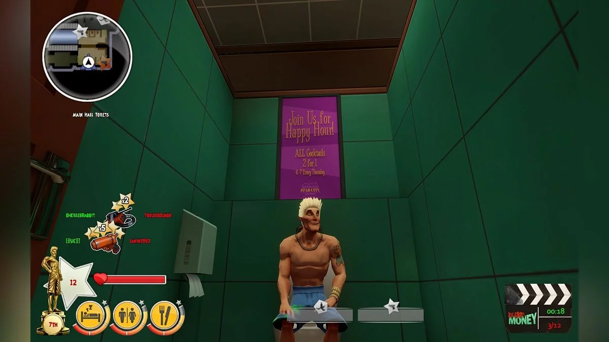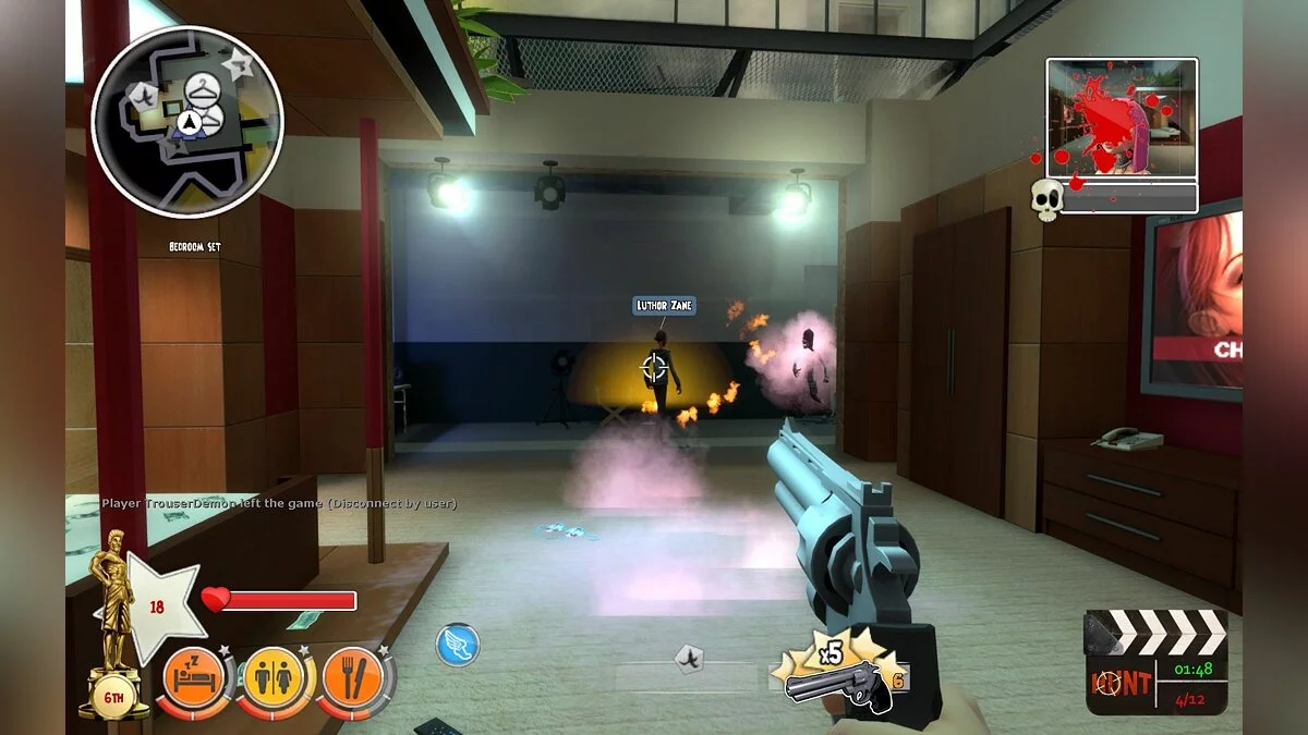 Добро пожаловать на самую кровавую и абсурдную съемочную площадку в истории видеоигр! Bloody Good Time — это не просто мультиплеерный шутер от первого лица, это настоящий цирк ужасов, где вместо актерского мастерства ценятся меткость сковородкой и умение подложить под ноги противнику взрывающуюся крысу. Разработанная студией Outerlight (да-да, теми самыми, кто подарил нам культовую The Ship), эта игра переносит вас в мир безумного режиссера, который снимает реалити-шоу, где выживает только самый изобретательный убийца. Забудьте про стандартные штурмовые винтовки и гранаты; здесь ваш арсенал — это кухонная утварь, бензопилы и радиоуправляемые грызуны со взрывчаткой. Это как «Бойцовский клуб» встретился с «Томом и Джерри», и они решили устроить вечеринку в стиле grindhouse!