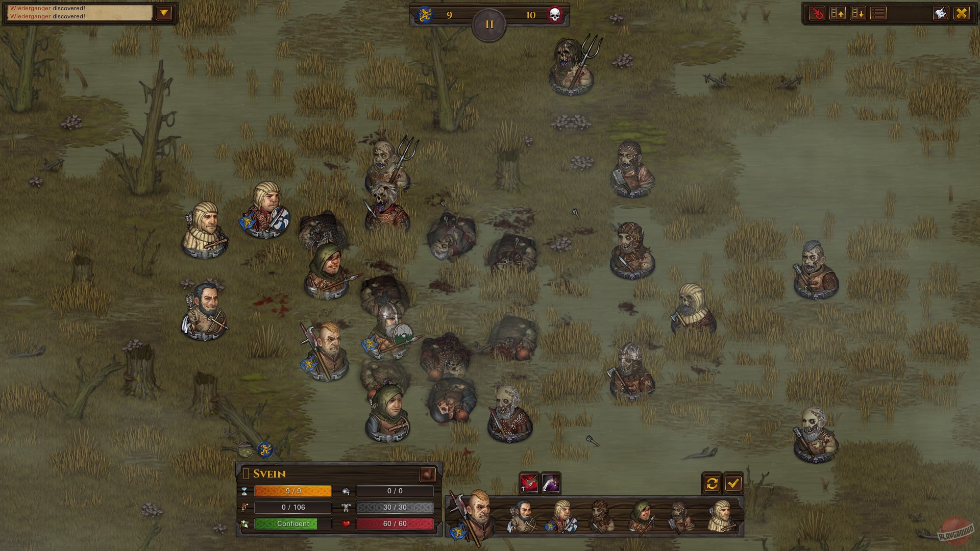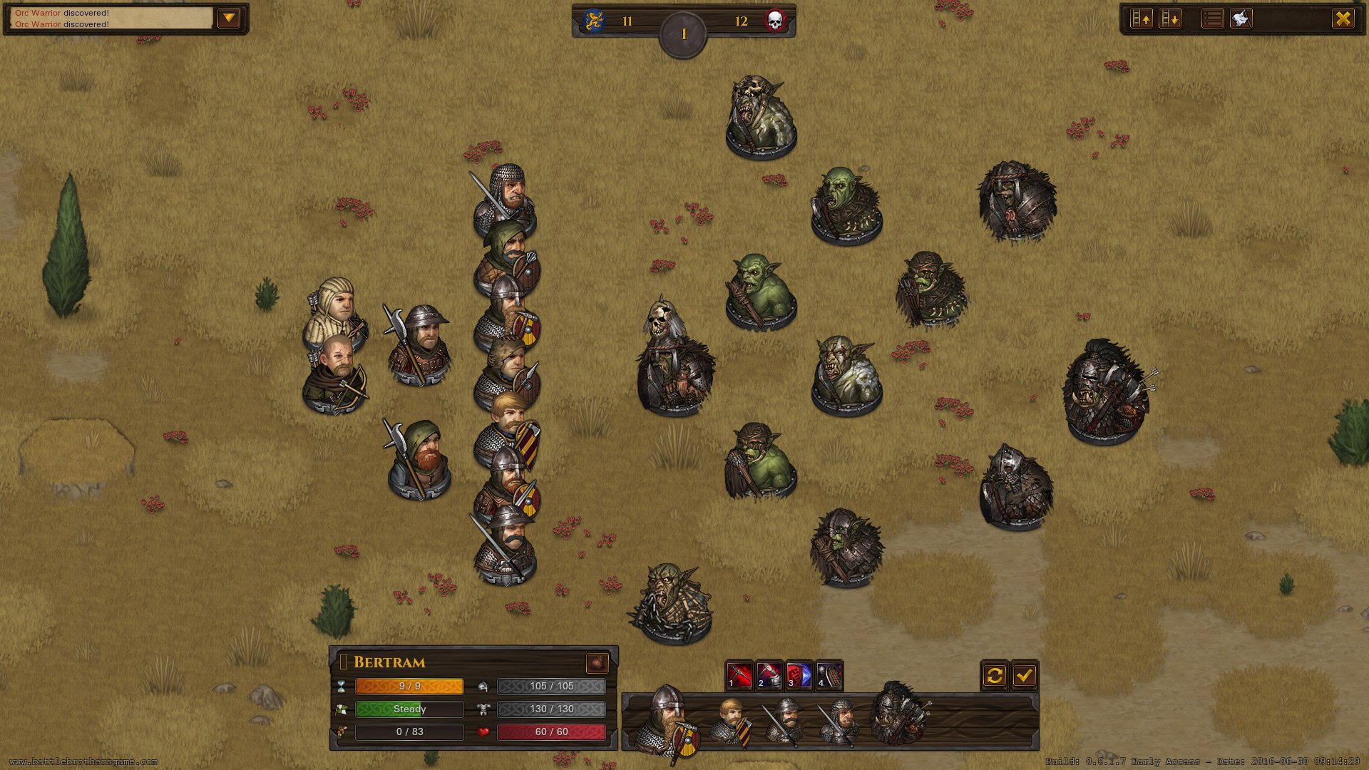 Геймплей Battle Brothers — это идеальный микс между глобальной стратегией и напряженными тактическими боями. На карте мира вы путешествуете со своим отрядом, принимаете контракты от отчаявшихся городов и деревень, охотитесь на гоблинов, зомби и прочих кошмаров этого проклятого мира. Каждый бой разворачивается на изометрической сетке и требует не просто нажатия кнопки "Атака", а продуманной тактики: правильно расставьте своих братьев, используйте рельеф местности, выбирайте правильное оружие против конкретного врага и молитесь, чтобы кубики удачи были к вам благосклонны. Ведь даже самый опытный ветеран может пасть от случайного удара ножом в спину, если вы забыли его прикрыть. Прокачка персонажей глубока и осмысленна: каждый боец уникален, имеет свои навыки, особенности и недостатки, которые нужно учитывать при формировании боевого порядка.