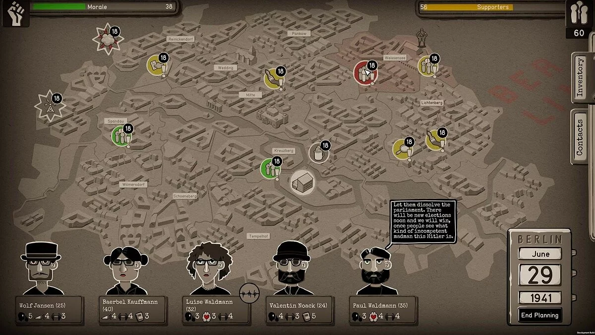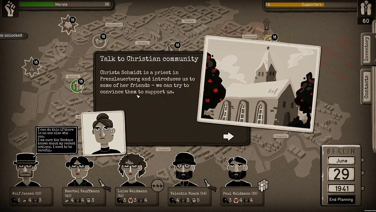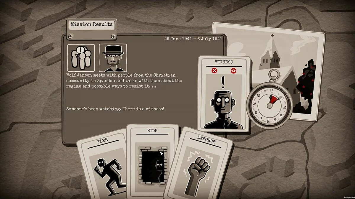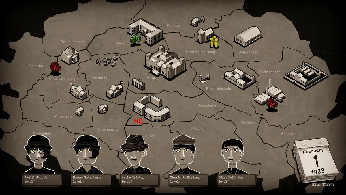 Ваша миссия в Through the Darkest of Times — выжить и нанести урон тоталитарной машине, не став её жертвой. Каждая неделя — это новый вызов: нужно собирать деньги, вербовать новых членов (надеясь, что они не шпионы), распространять листовки, саботировать мероприятия нацистов и помогать преследуемым. Все ваши действия — это риск, и система слежки Гестапо не дремлет. Один неверный шаг, одна неосторожная фраза — и ваш герой может исчезнуть без следа. Игра разделена на четыре главы, охватывающие ключевые периоды с 1933 по 1945 год, и каждое ваше решение влияет на ход повествования и моральный дух вашей группы. Это как «Игра престолов», только вместо Винтерфелла — Берлин, а вместо белых ходоков — черные рубашки СА.