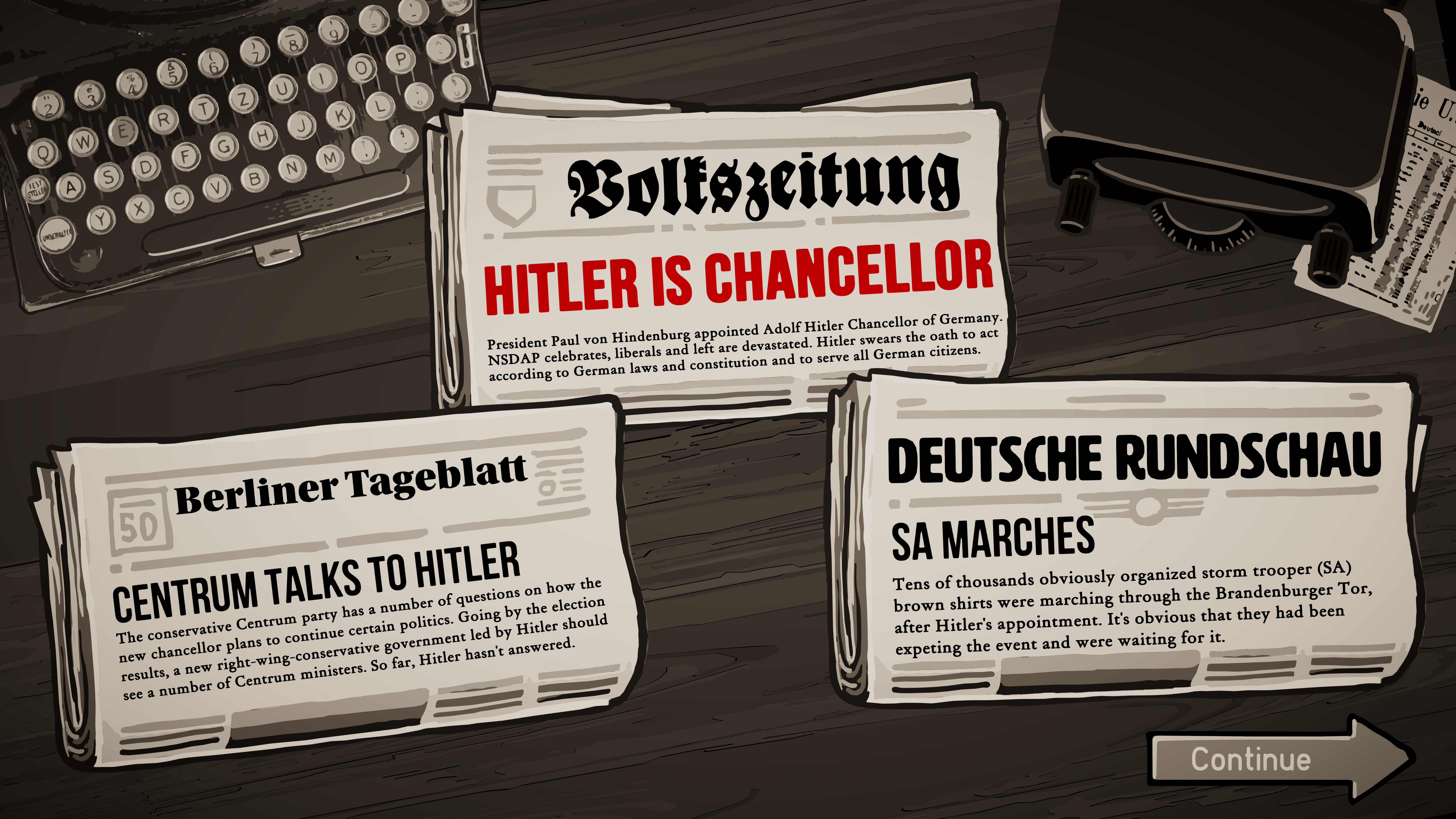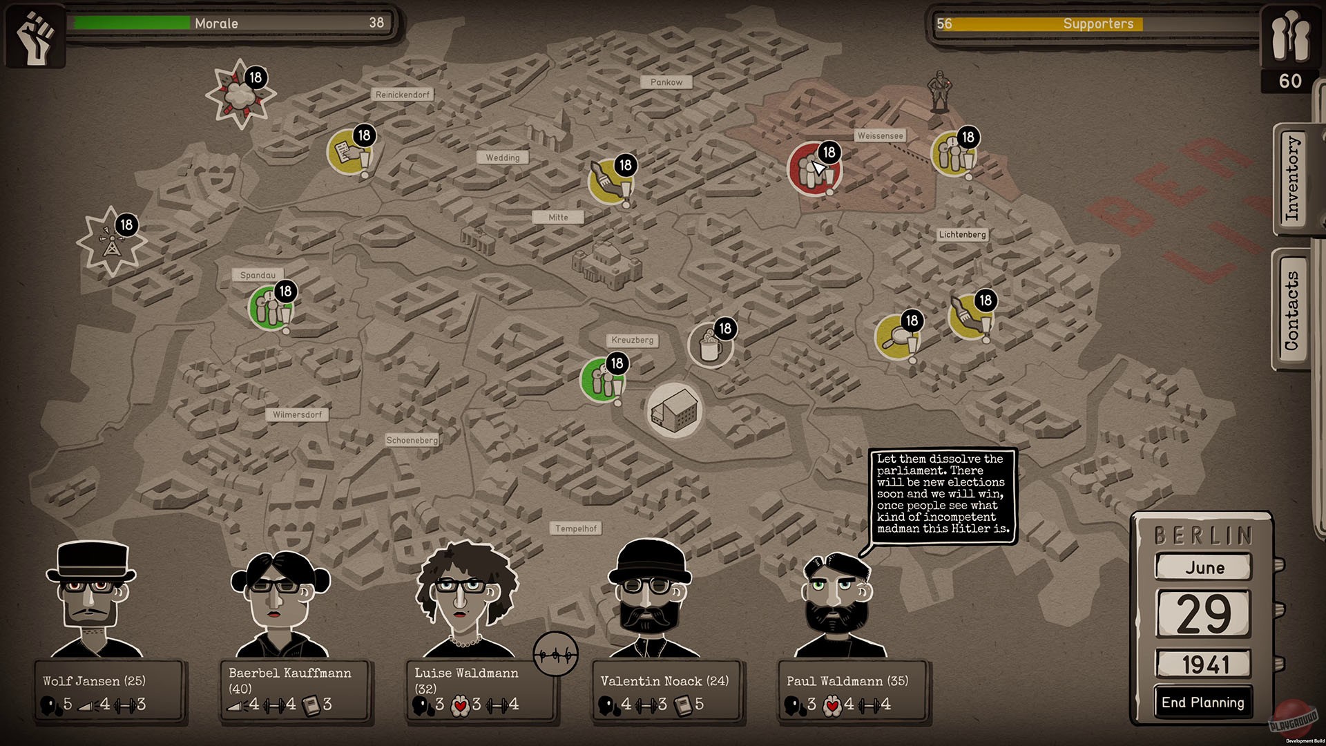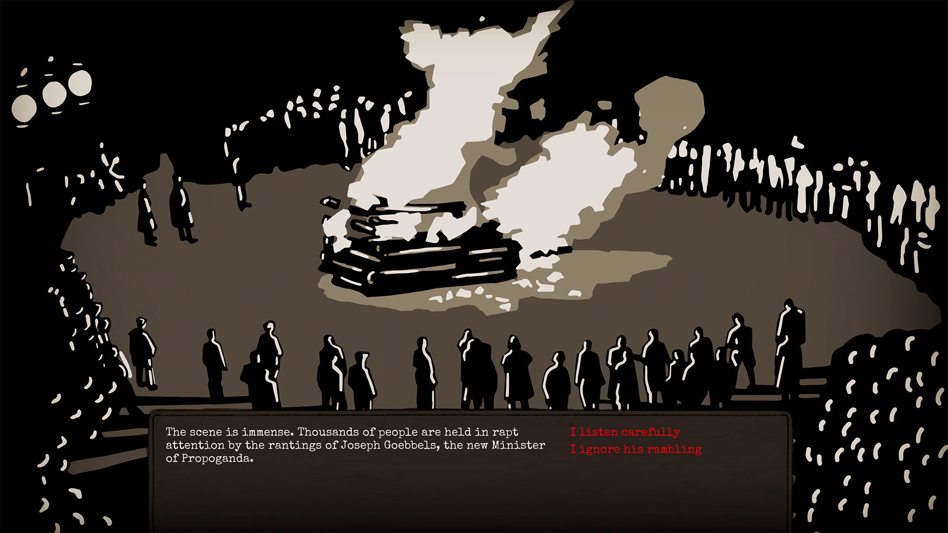 Ваша миссия в Through the Darkest of Times — выжить и нанести урон тоталитарной машине, не став её жертвой. Каждая неделя — это новый вызов: нужно собирать деньги, вербовать новых членов (надеясь, что они не шпионы), распространять листовки, саботировать мероприятия нацистов и помогать преследуемым. Все ваши действия — это риск, и система слежки Гестапо не дремлет. Один неверный шаг, одна неосторожная фраза — и ваш герой может исчезнуть без следа. Игра разделена на четыре главы, охватывающие ключевые периоды с 1933 по 1945 год, и каждое ваше решение влияет на ход повествования и моральный дух вашей группы. Это как «Игра престолов», только вместо Винтерфелла — Берлин, а вместо белых ходоков — черные рубашки СА.