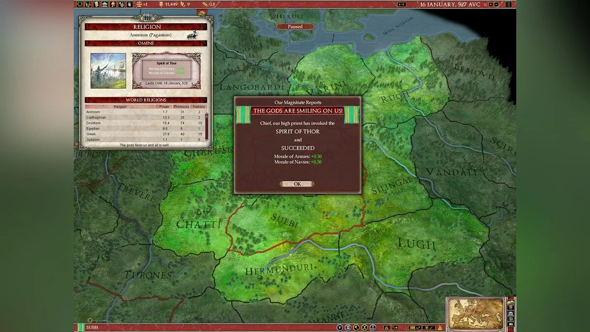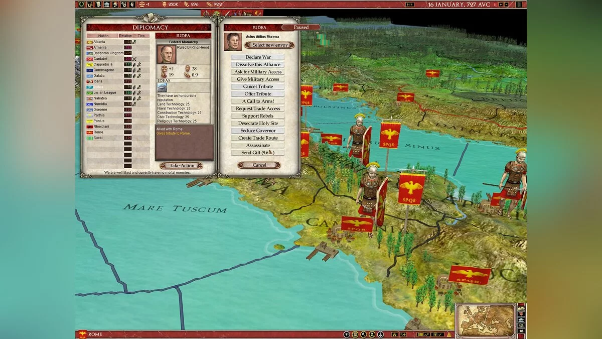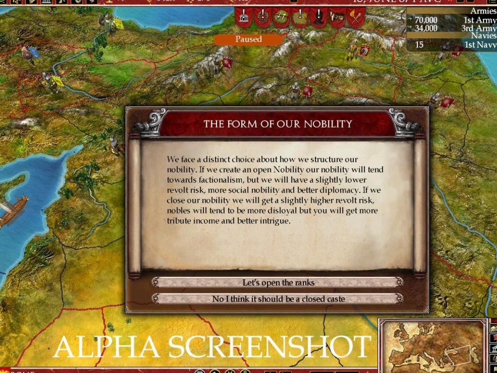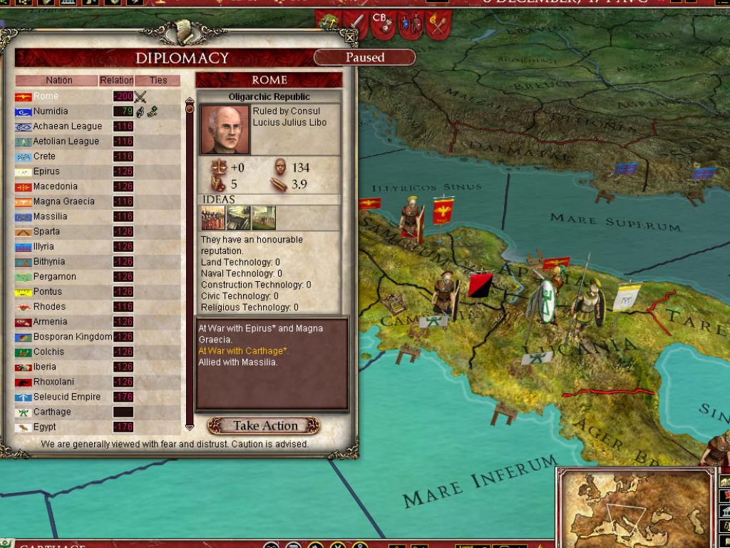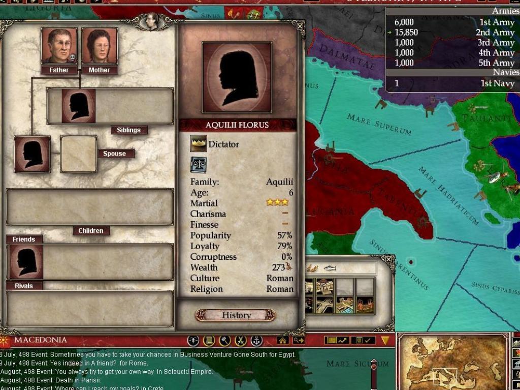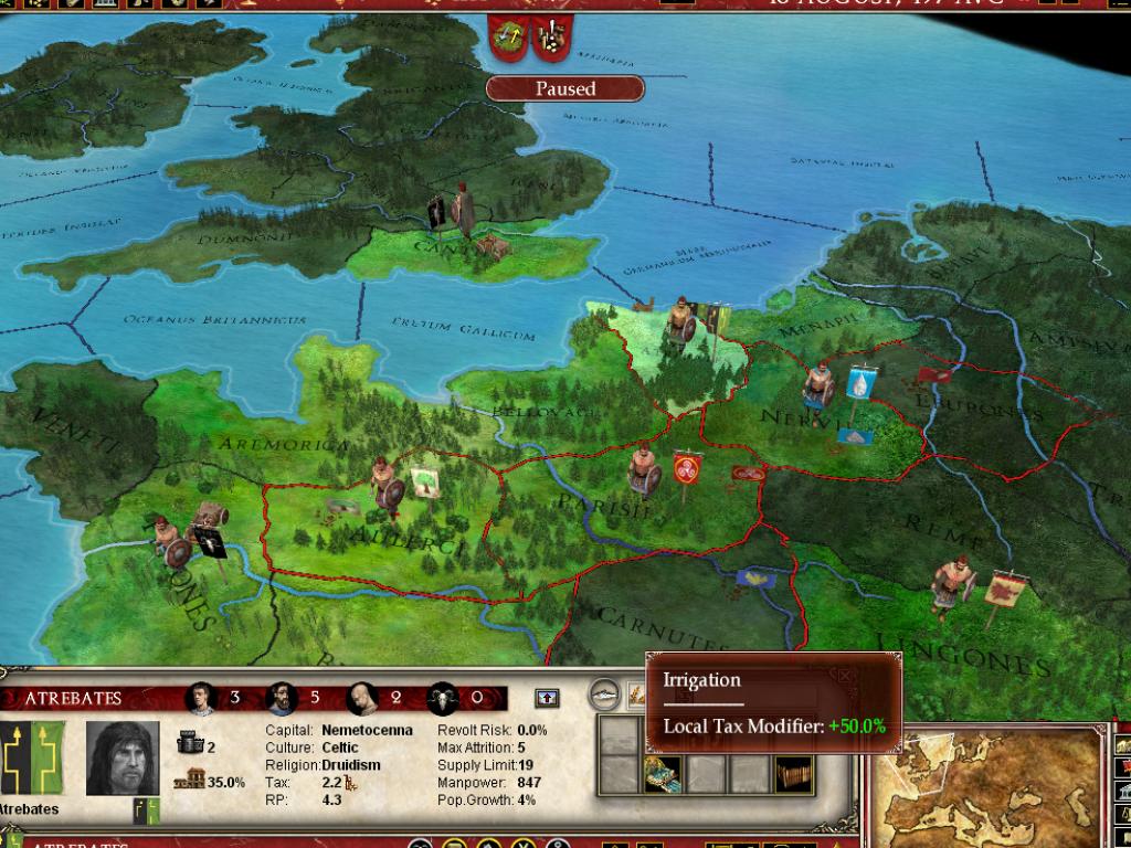 В Europa Universalis: Rome вы не просто управляете страной, вы становитесь ее душой и мозгом одновременно. Выберите одну из более чем 50 фракций — от могущественного Рима и коварного Карфагена до множества других народов, каждый со своей уникальной культурой и амбициями. Ваша задача? Расширять границы, укреплять экономику, плести интриги и следить, чтобы ваши граждане не устроили бунт из-за нехватки хлеба или цирковых представлений. Система управления ресурсами и населением здесь продумана до мелочей: в каждом регионе есть своя "биржа труда", где можно найти толкового министра или харизматичного посла, который не продаст вас за мешок сестерциев при первой же возможности. Это как Tinder для государственных служащих, только вместо лайков — доверие и эффективность.