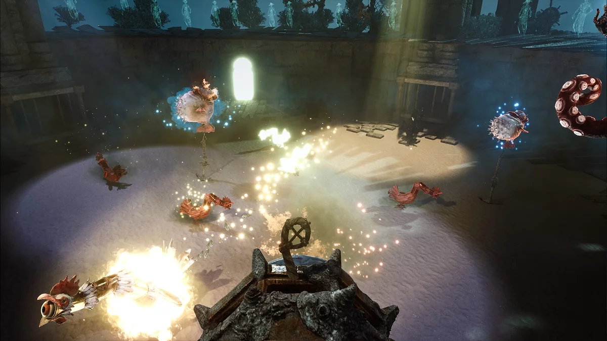 Игра на пиратскую тематику от создателей Blacktail. В Davy x Jones ваш герой — это буквально безголовый труп легендарного пирата Дэви Джонсона, который был предан, ограблен и обезглавлен. А его череп теперь болтается рядом, острит и указывает путь. И всё это происходит в Рундуке — этакой загробной версии пиратского мира, где девять островов плавают в бесконечном море облаков.