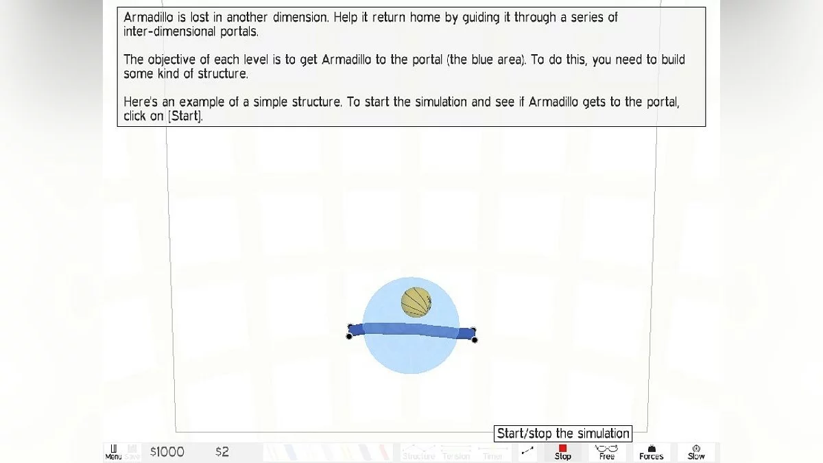 Armadillo Run — это чистейшей воды физическая головоломка, которая заставит вас по-новому взглянуть на законы Ньютона. Ваша задача — сконструировать хитроумную конструкцию, которая либо аккуратно подтолкнёт броненосца, либо запустит его, словно камень из пращи, прямо в зону назначения (голубую область, если быть точным). Каждый уровень — это белый лист для вашего творчества и испытательный полигон для ваших самых дерзких инженерных решений. Хочется построить катапульту? Пожалуйста! Мечтаете о сложной системе блоков и тросов, как у Леонардо да Винчи? Вперёд! А может, вы попробуете создать что-то, напоминающее знаменитые машины Руба Голдберга? Всё возможно в этом удивительном мире, где реалистичная физика — ваш главный союзник и злейший враг одновременно.
