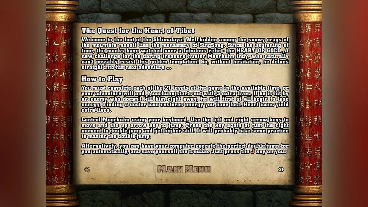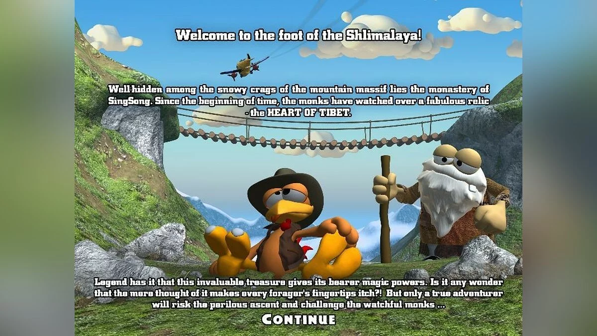 Забудьте про Индиану Джонса — у нас теперь есть Морхухн Джонс! В Crazy Chicken: Heart of Tibet наш пернатый археолог отправляется не на поиски Ковчега Завета, а за куда более экзотическим артефактом — легендарным Сердцем Тибета. И да, вместо хлыста у него... ну, в общем, куриные крылья, но это не мешает ему прыгать, бегать и избегать ловушек с завидной прыткостью. Эта игра — это классический платформер с видом сверху, где вам предстоит преодолеть 21 уровень, наполненный снежными заносами, древними монастырями, коварными ловушками и местными обитателями, которые явно не рады вашему визиту.