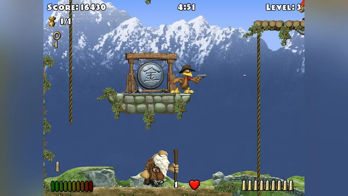 Представьте себе: вы — курица в тибетских горах. Вокруг вас не только суровая природа, но и целая армия врагов, жаждущих помешать вашей миссии. От встречи со злобными йети до столкновений с местными духами и демонами — скучать не придется! Геймплей Crazy Chicken: Heart of Tibet строится на том, чтобы ловко прыгать по платформам, собирать бонусы, решать нехитрые головоломки и, конечно же, уворачиваться от всего, что может вас убить. Это старая добрая школа геймплея, где каждая ошибка карается моментальной смертью, так что будьте готовы к тому, что ваши нервы будут на пределе, а чувство юмора — вашим главным союзником.