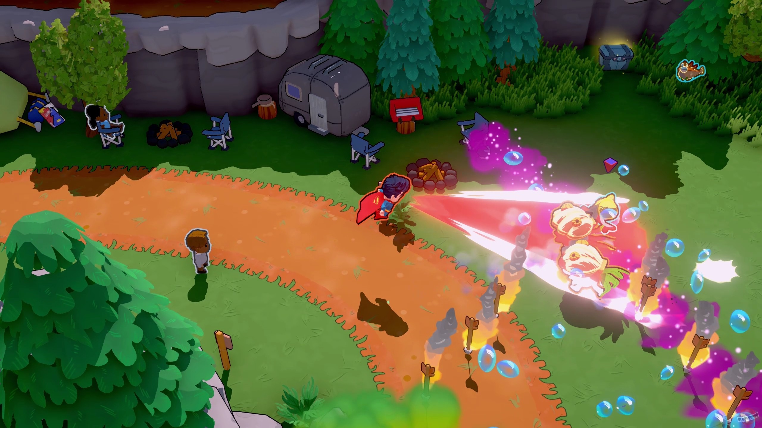 Супермен, Чудо-женщина и Бэтмен объединяются, чтобы дать отпор суперзлодею и спасти город Счастливая Гавань. Есть возможность исследовать мир в кооперативе.