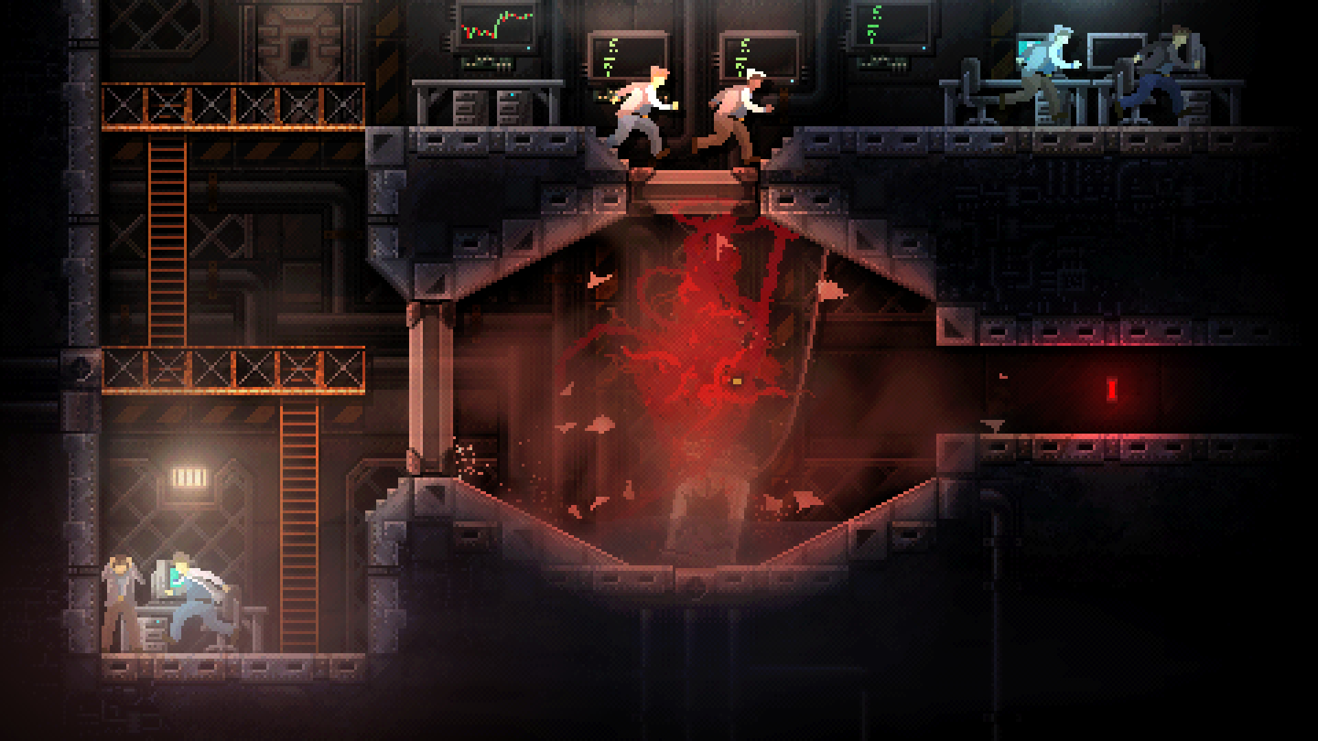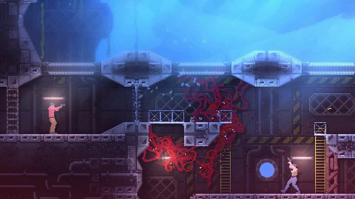 CARRION - это хоррор "наоборот", в котором игроков ждет роль аморфного создания неизвестного происхождения, которое перемещается по человеческому комплексу, наводя страх и ужас на его сотрудников. Игрокам нужно расти и эволюционировать, чтобы существо смогло выбраться из своей тюрьмы и отомстить своим обидчикам.
