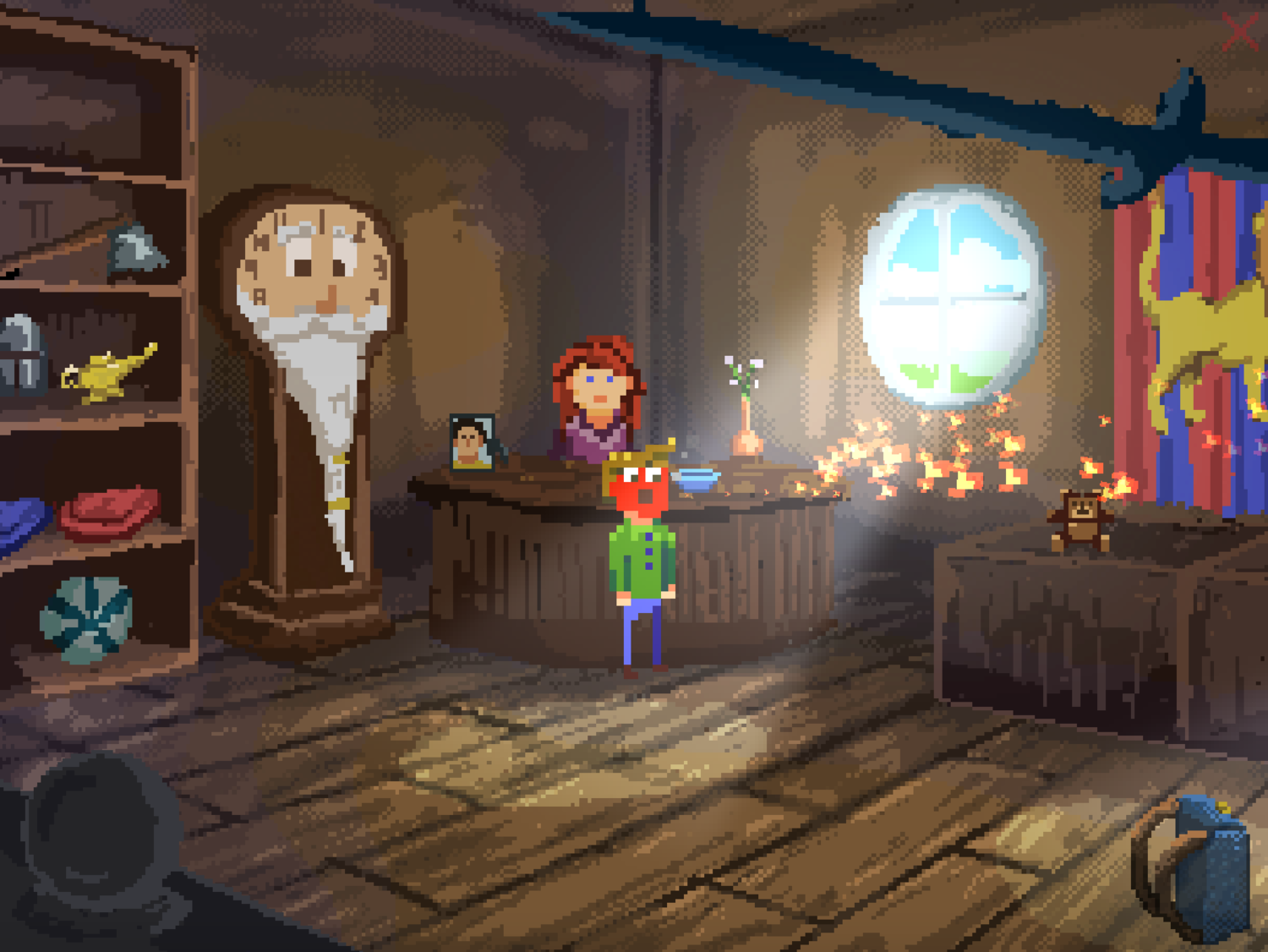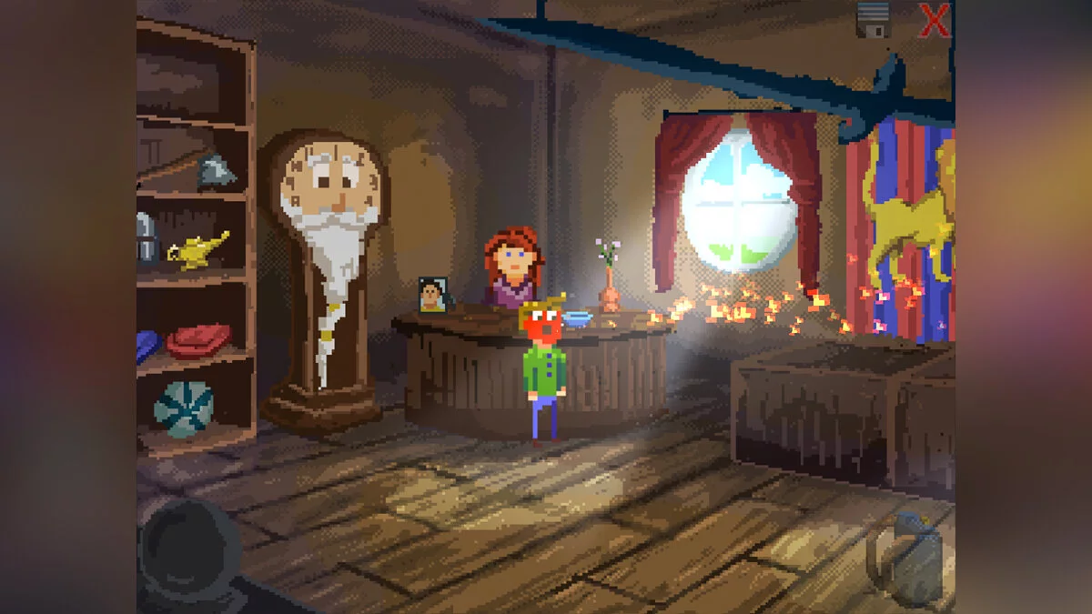 Tick's Tales: Up All Knight — это классическая point-and-click adventure с ярко выраженным чувством юмора и очаровательной ретро-графикой, которая сразу переносит вас в золотую эру жанра. Вас ждёт линейный, но очень увлекательный сюжет, где каждая головоломка — это повод для смеха. Вам предстоит общаться с эксцентричными жителями деревни, находить самые неожиданные решения проблем (например, использовать курицу как инструмент или убедить старика, что его тапок — это древний артефакт) и, конечно же, пытаться произвести впечатление на прекрасную Джорджию. Геймплей здесь интуитивно понятен: кликайте по всему, что движется, комбинируйте предметы в инвентаре и наслаждайтесь диалогами, написанными с изрядной долей самоиронии и отсылок к классическим фильмам и играм.