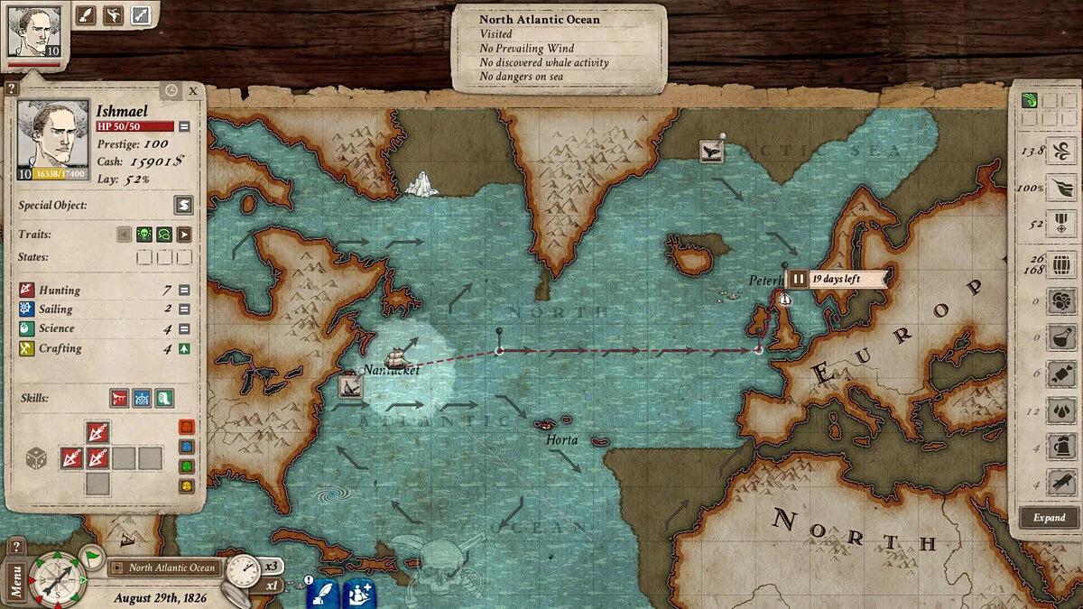 Nantucket - это приключенческая игра, в которой игрокам предлагается история, вдохновленная романом Германа Мелвилла "Моби Дик". События игры разворачиваются спустя несколько лет после событий книги, а игроков вновь ждут охота на китов и приключения в различных уголках земного шара.