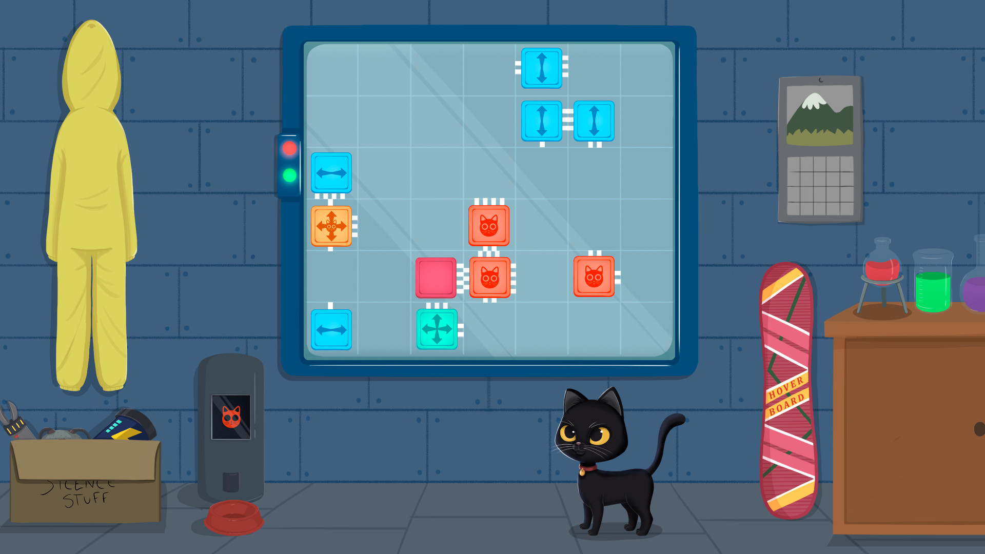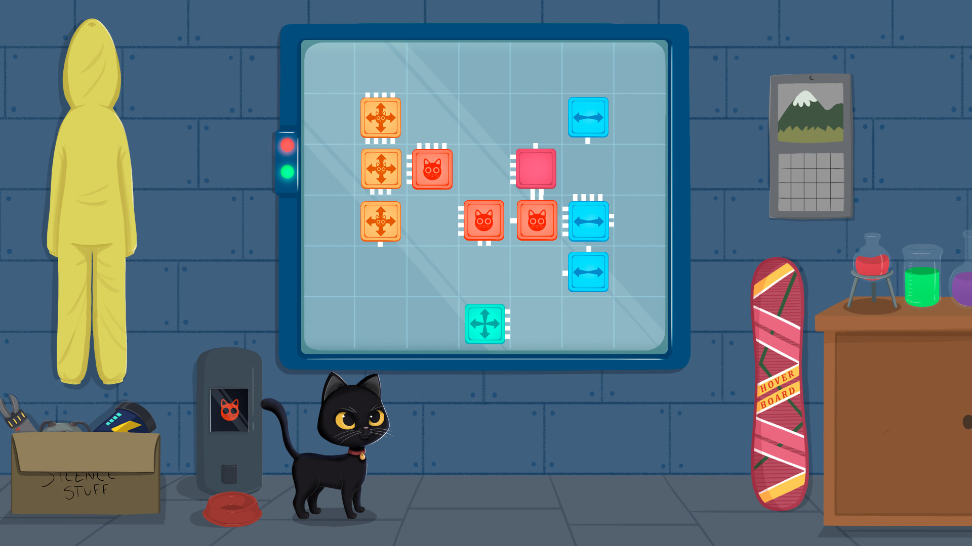 Meow Lab — милая аркадная головоломка с обучающими элементами и видом сбоку. Вы необычайно гениальный ученый, но ваша кошка этого не знает, она просто хочет еды и заботы. По мере прохождения вам предстоит двигать, вращать, правильно соединять блоки и таким образом кормить пушистого зверька. Вас ожидает 50 уникальных уровня, оригинальное музыкальное сопровождение, медитативный геймплей и удобное управление.