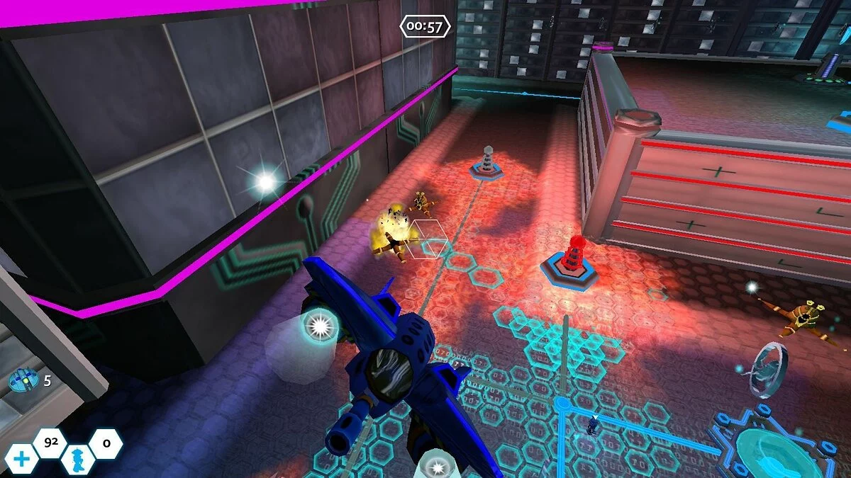 Геймплей Bit Shifter — это гениальный микс экшен-стрельбы и тактического управления. Вы не просто летаете и палите во все стороны, как герой из «Матрицы». Нет! Ваш корабль Scandisc — это многофункциональная боевая единица. Вы можете подбирать своих поврежденных робо-бойцов, переносить их в безопасное место, ставить на ключевые позиции для обороны и даже исцелять прямо в бою! Это как быть одновременно и Джоном Уиком, и доктором Хаусом в мире нулей и единиц. Каждый уровень — это новая головоломка, где нужно не только иметь меткую руку, но и стратегически мыслить, чтобы эффективно использовать свои ограниченные ресурсы и отбить очередную волну зловредных программ.