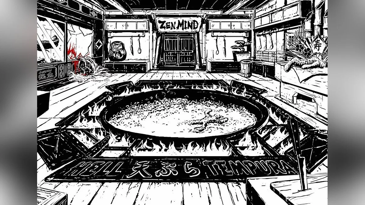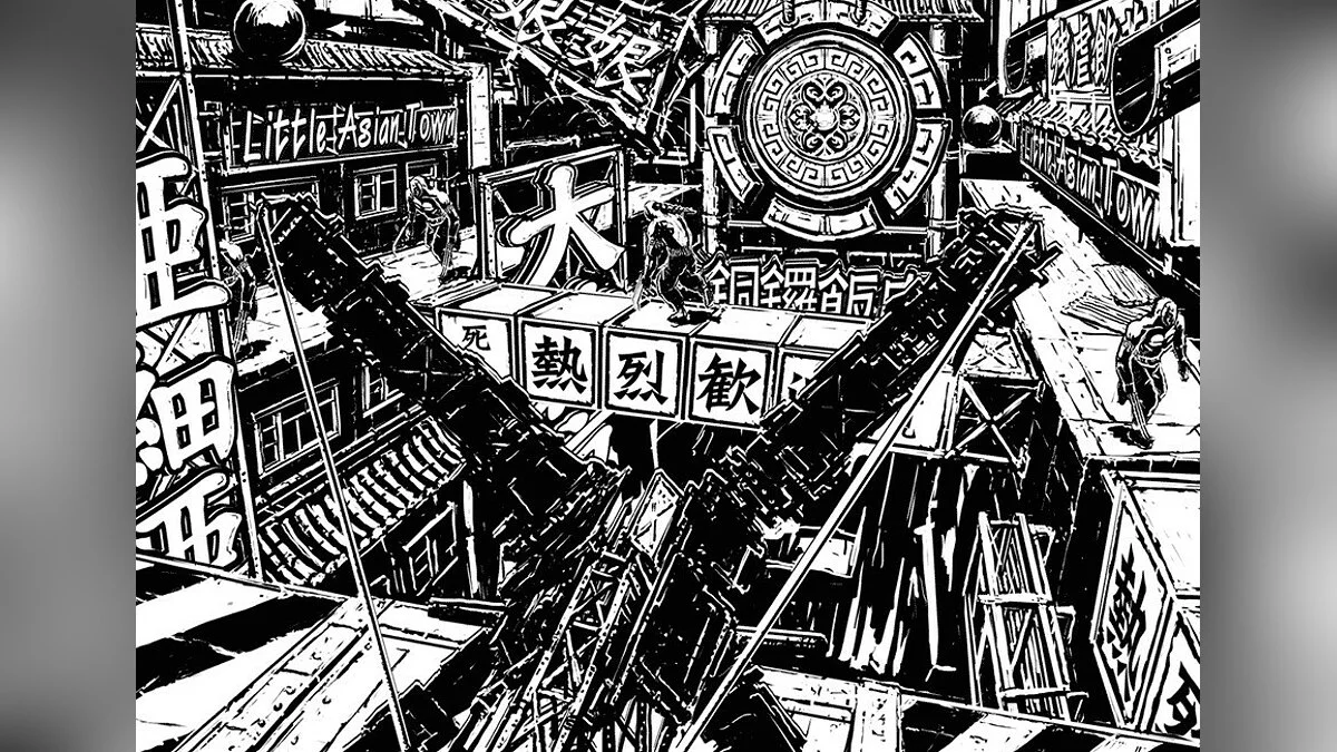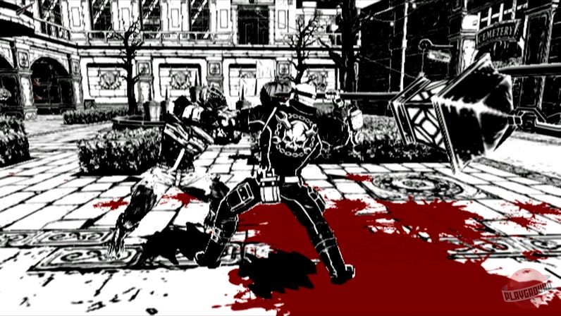 Главная фишка Madworld, которая бьет прямо в глаза (и не только в глаза), — это ее уникальная визуальная стилистика. Весь мир выполнен в монохромных тонах, словно старый комикс или фильм нуар 40-х годов. Единственное яркое пятно во всей этой серости — это реки, водопады и гейзеры сочной, насыщенной красной крови. Этот контраст создает неповторимую атмосферу, которая одновременно завораживает и пугает. Комбинируйте это с саркастичным, черным юмором, который просачивается в диалоги и ситуации, и вы получите игру, которая не воспринимает себя всерьез, позволяя вам расслабиться и просто наслаждаться хаосом. Это не просто экшен-игра для Wii, это культурный феномен для тех, кто устал от стандартных блокбастеров.