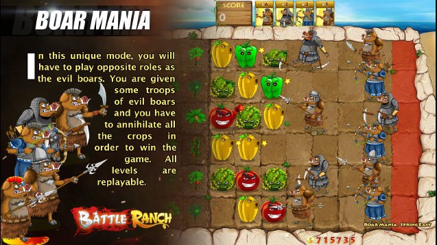 Так что наденьте свой самый прочный фартук, вооружитесь лопатой и приготовьтесь к самой нелепой и весёлой битве на ферме! В Battle Ranch вас ждут часы увлекательного геймплея, сотни волн свиней-захватчиков и возможность доказать, что даже самый простой овощ может стать героем. Скачайте эту казуальную стратегию и покажите этим кабанам-викингам, кто здесь хозяин на ранчо!