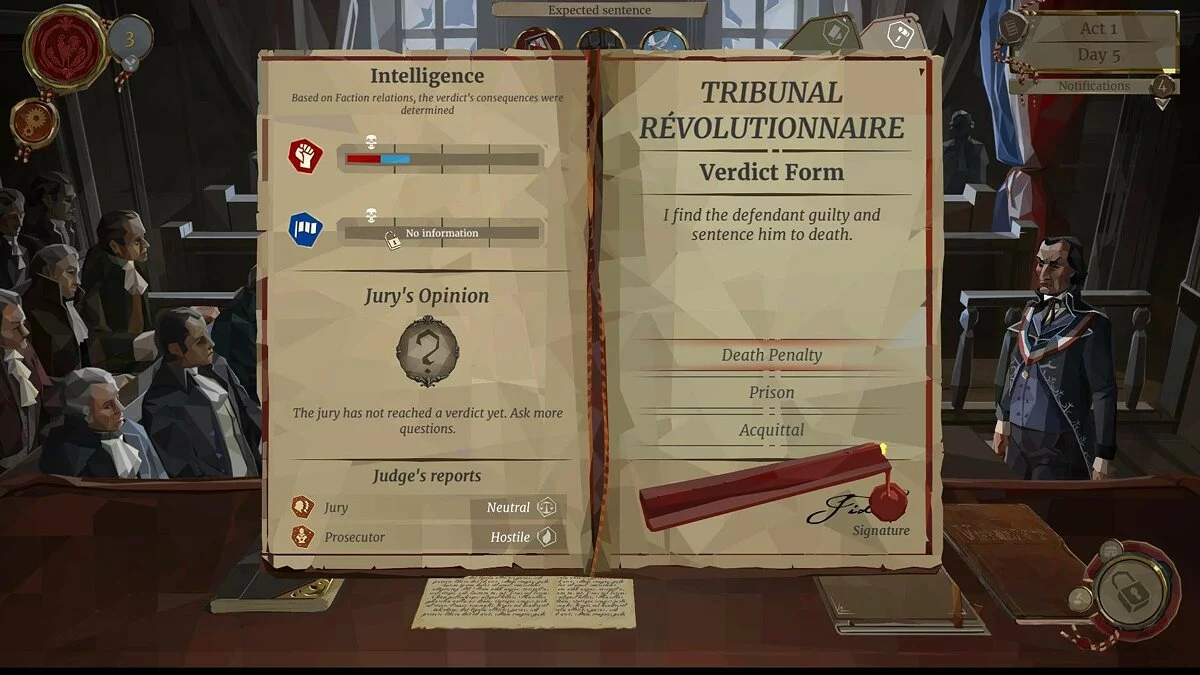We. The Revolution - это необычная игра, рассказывающая о конце Великой французской революции 1794 года. Игрокам отводится роль судьи на революционном суде, и от решений игроков зависит то, кто будет жить, а кто погибнет, кто останется на свободе, а кого швырнут за решетку. Каждое решение понемногу меняет историю, и судьба самого игрокам во многом зависит от принятых им решений.
