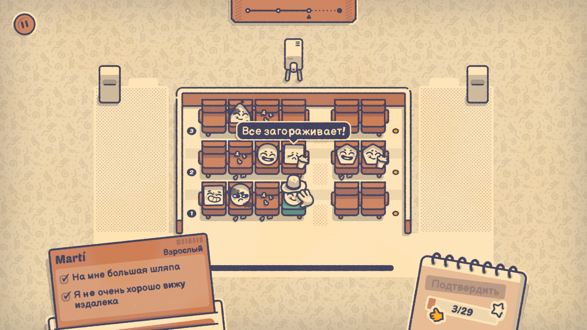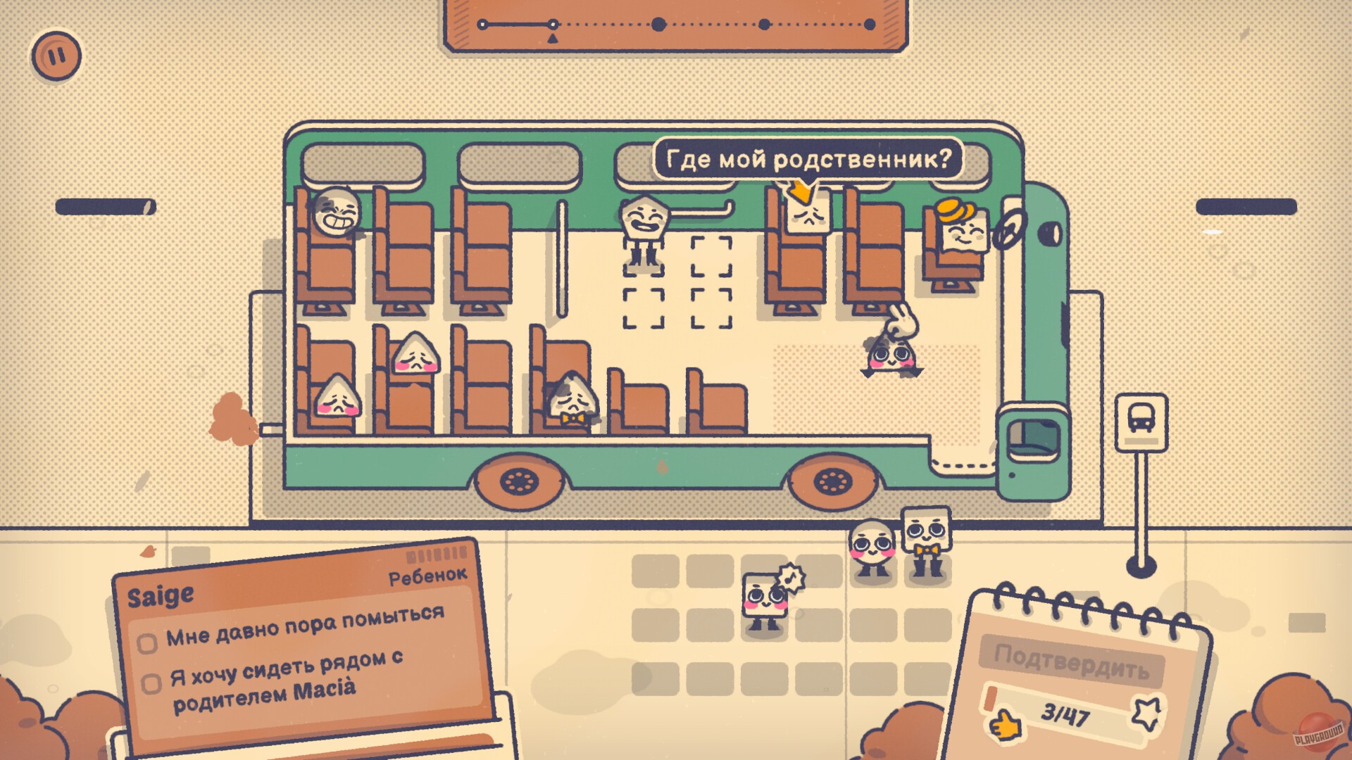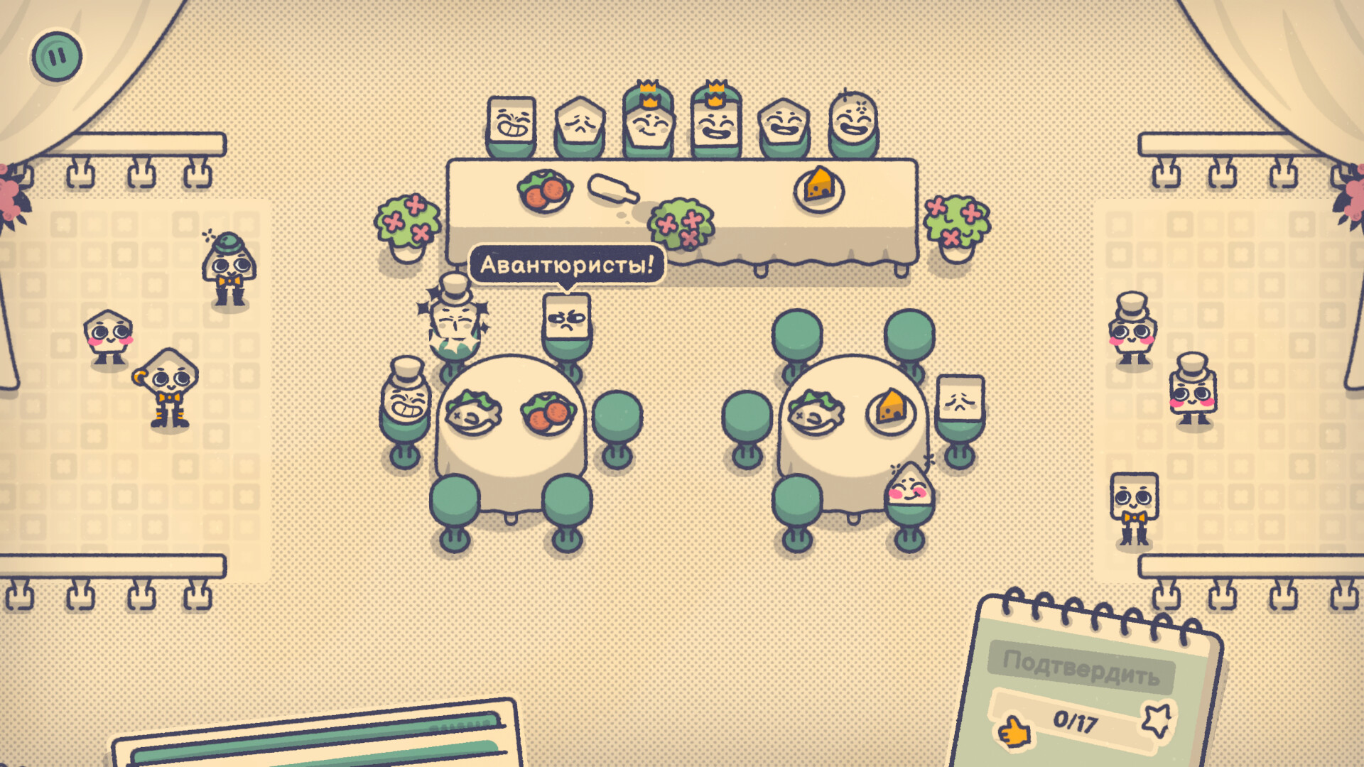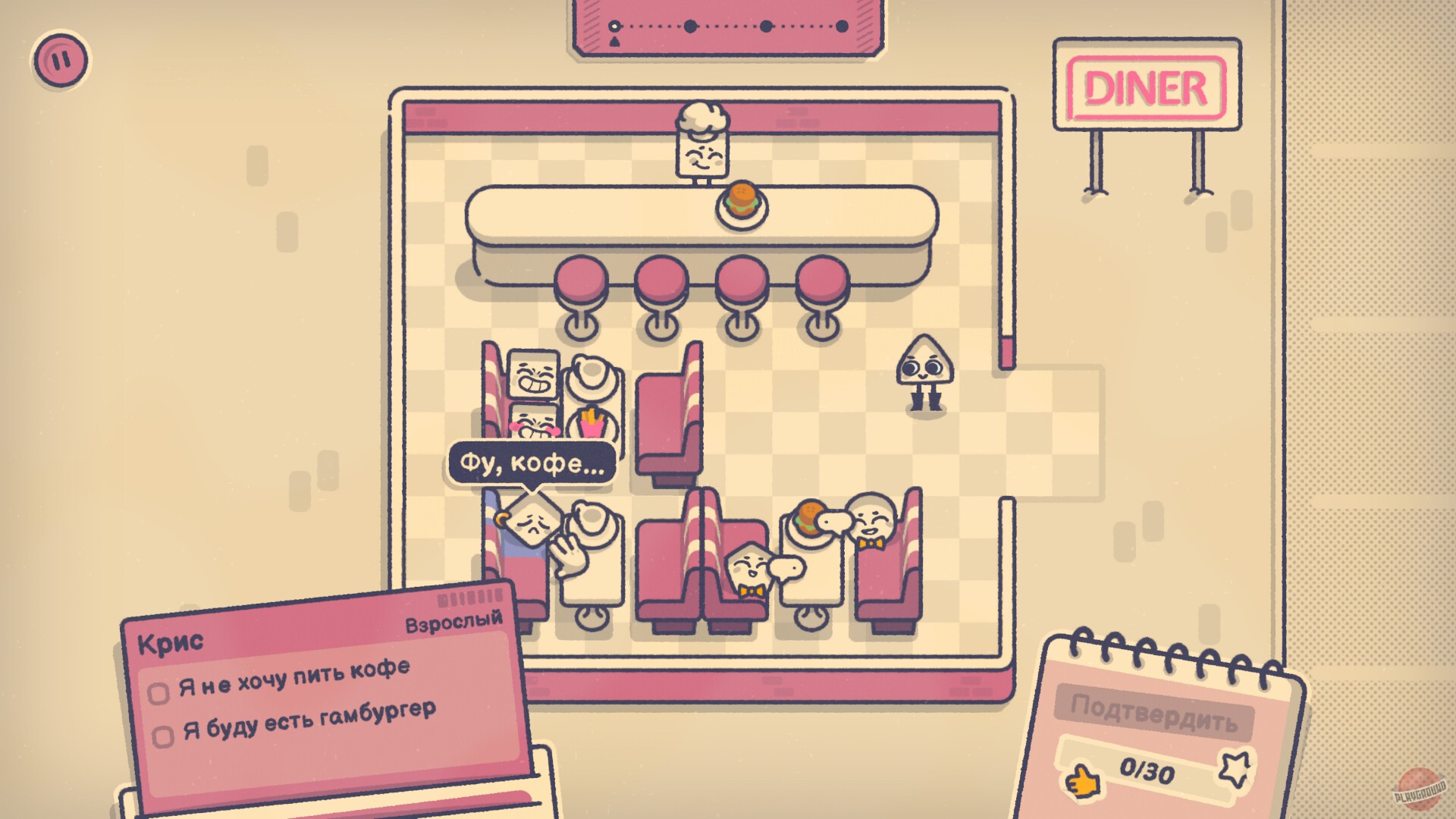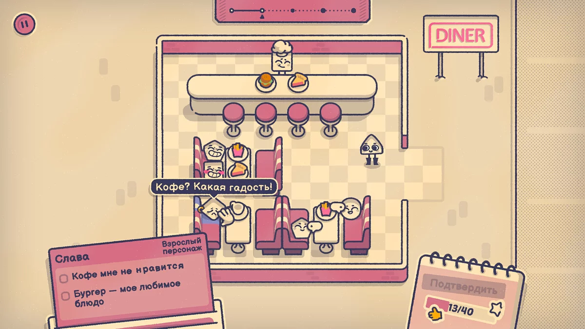 Игрок помогает группе персонажей решать проблемы, решая головоломки. Например, нужно рассадить нескольких человек за столом, учитывая всех пожелания. Для этого придется знакомиться с героями, слушать их истории и узнавать уникальные черты.